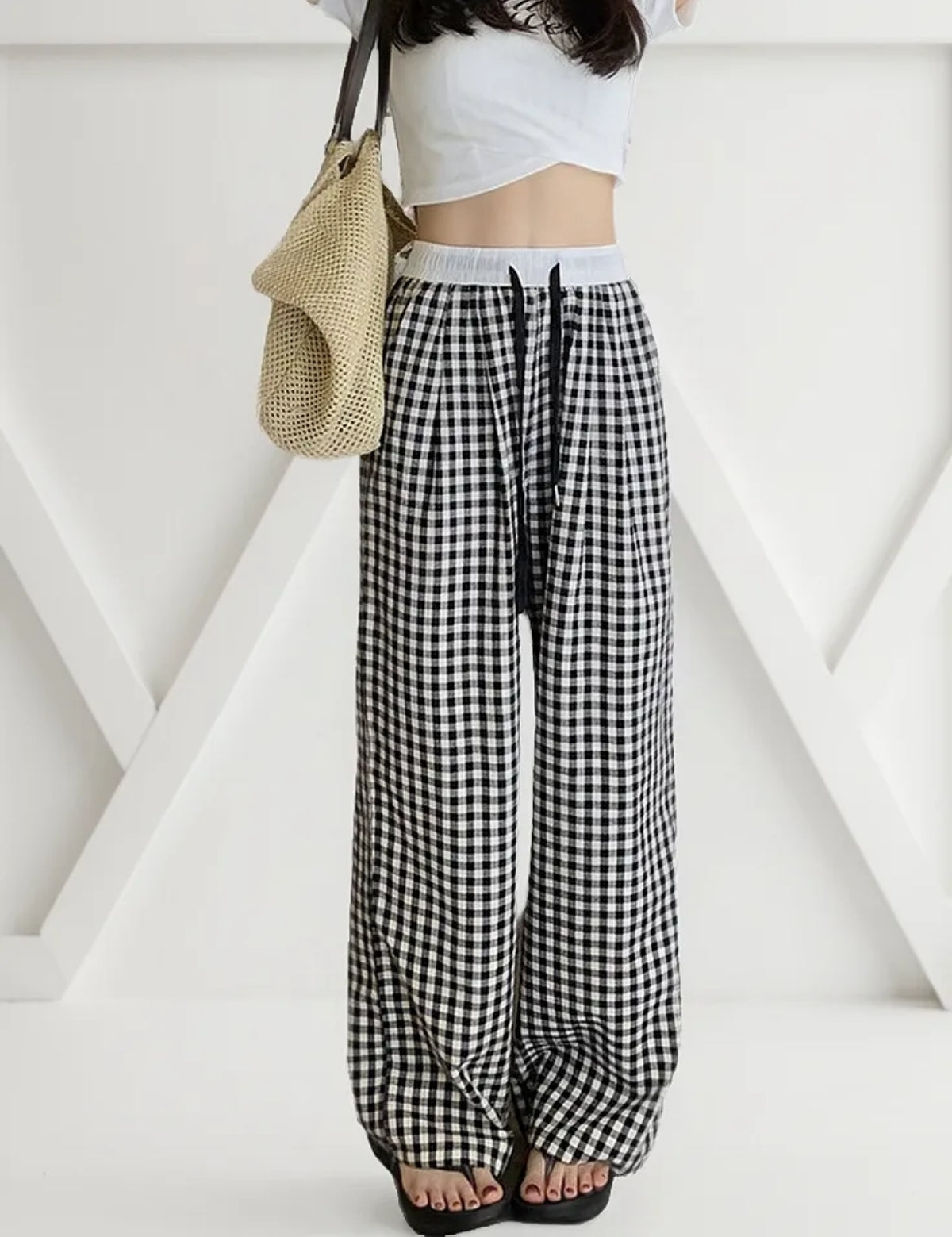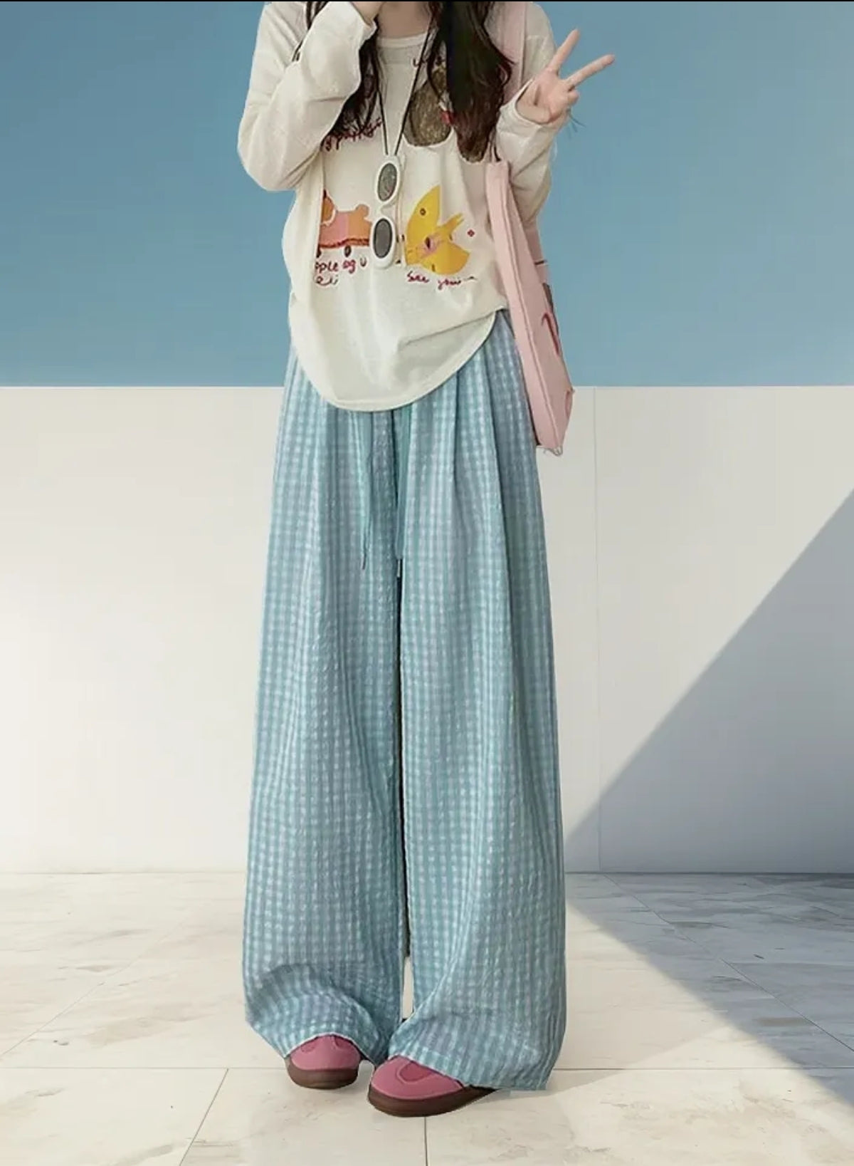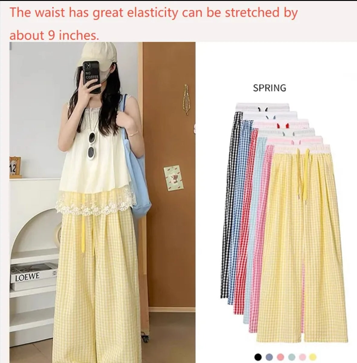 Pantalones a cuadros de pierna ancha con dopamina para mujer, pantalones largos holgados informales, rosas, Y2K, dulce, con cordón, pantalones juveniles, ropa de verano, nuevos productos químicos de alta preocupación: ninguna artesanía de tejido: tejdo artesanal: temporada: verano: mediana edad Lugar de origen: China (continental) Estilo de pantalón: recto Estilo de cintura: plisado Tipo de estampado: a cuadros. decoración: desgastado, con cordones, tipo de cierre; cintura elástica Tipo de tela: corte mixto : corte regular: Longitud Y2k: pantalones hasta los tobillos Material: POLIÉSTER