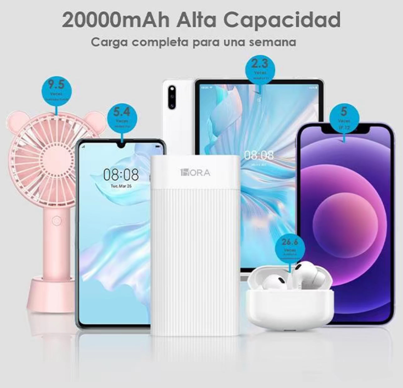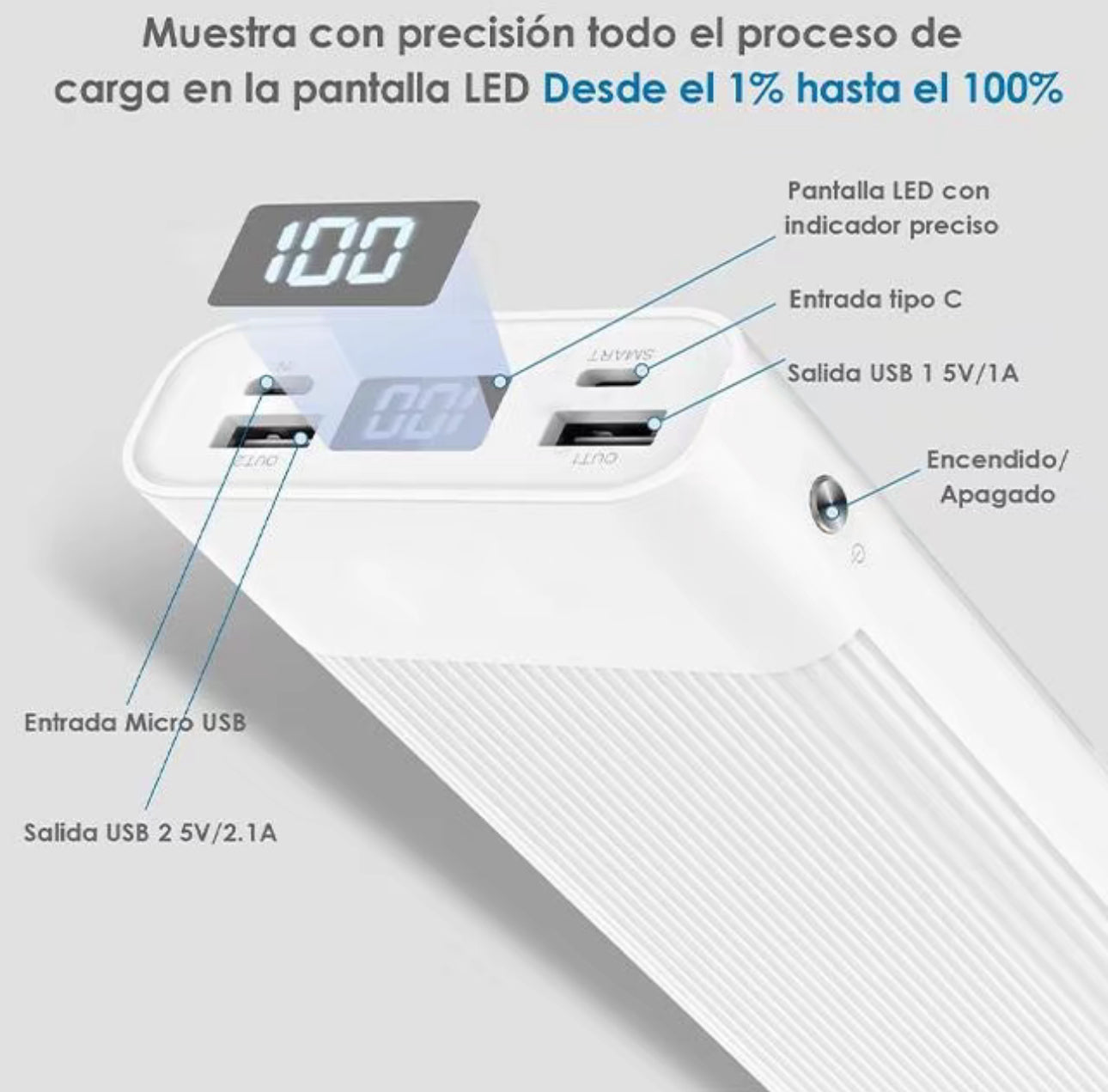 - Nuestro Power bank 20000mAh para smartphone contiene