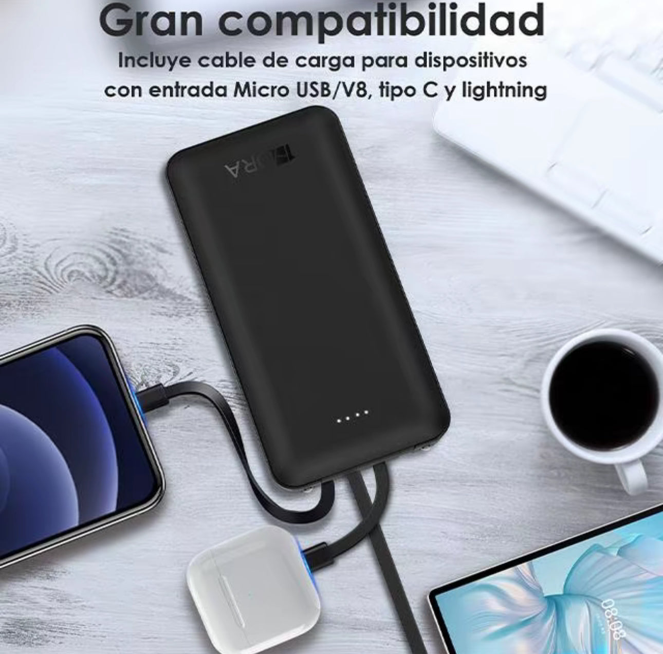 1HORA Power Bank 20000mah Batería Portátil Con 4 Cables Con Pantalla DigitalGAR159