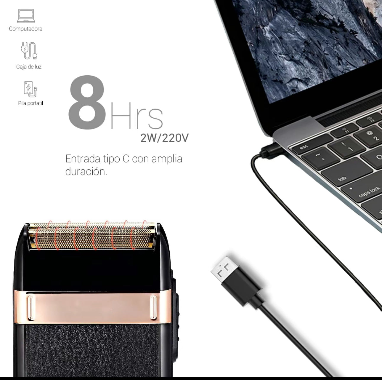 Afeitadora recargable, diseñada para un rasurado preciso y suave en cualquier lugar. Con una batería de larga duración y carga rápida, es ideal para el cuidado de la barba diaria, tanto en casa como en viaje.