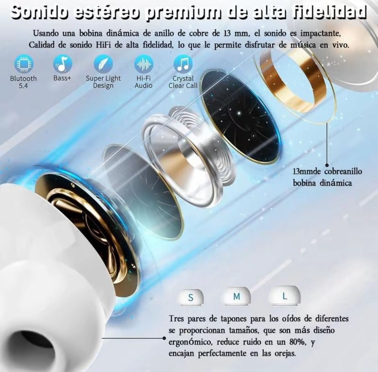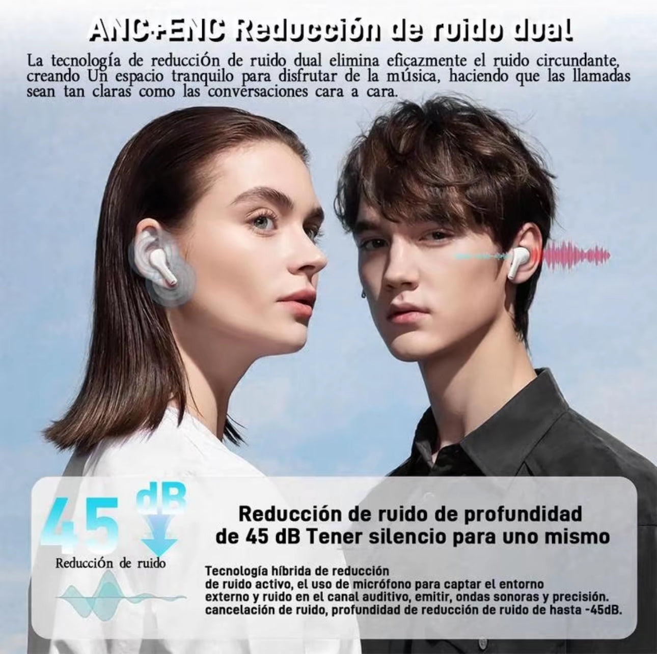 Este producto es un dispositivo de terceros independiente, no afiliado a ningún fabricante específico. Las funcionalidades descritas corresponden a tecnologías de uso común en el sector de audio inalámbrico.