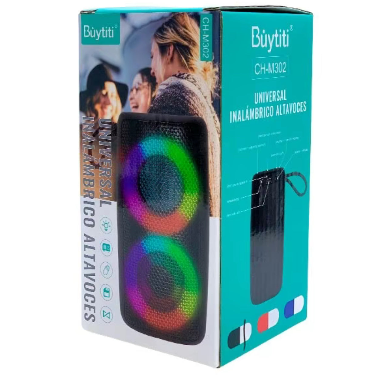 Bocina Bluetooth con Luz LED Material Antiderrapante, Conexión TWS: vincula dos bocinas fácilmente CH-M302
