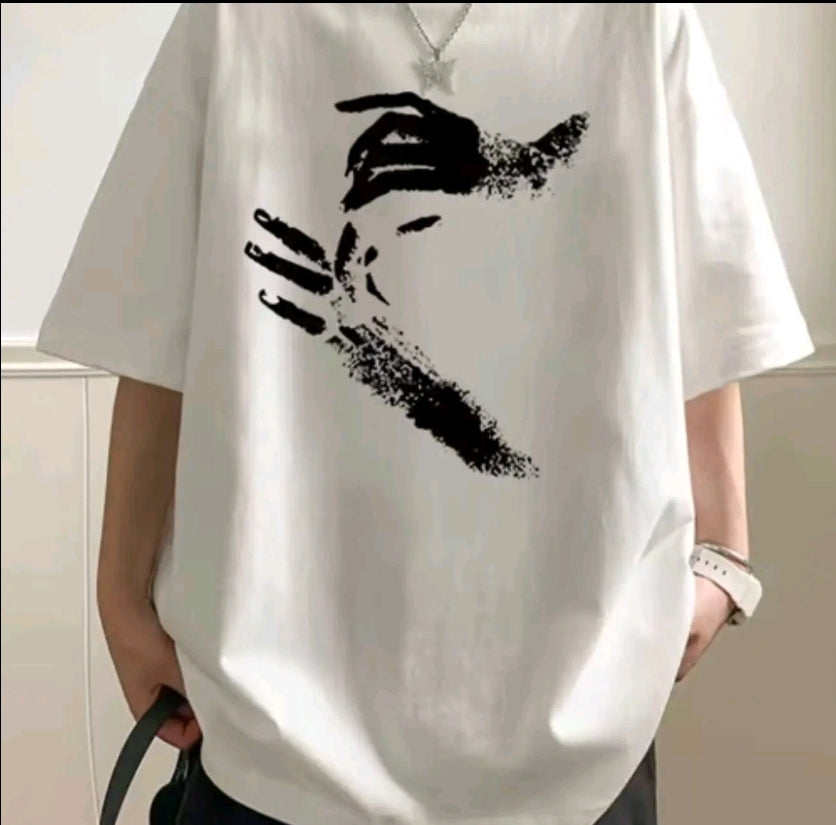 Camiseta Casual para Mujer con Estampado de manos pintura - Mezcla de Poliéster Suave, Cuellc Redondo, Manga Corta, Tejido de Punto Semi-Tansparente, Lavable a Máquina, Camiseta para Uso Diaric ITop de Cuello Redondo | Material Semi-Transparente, Cam