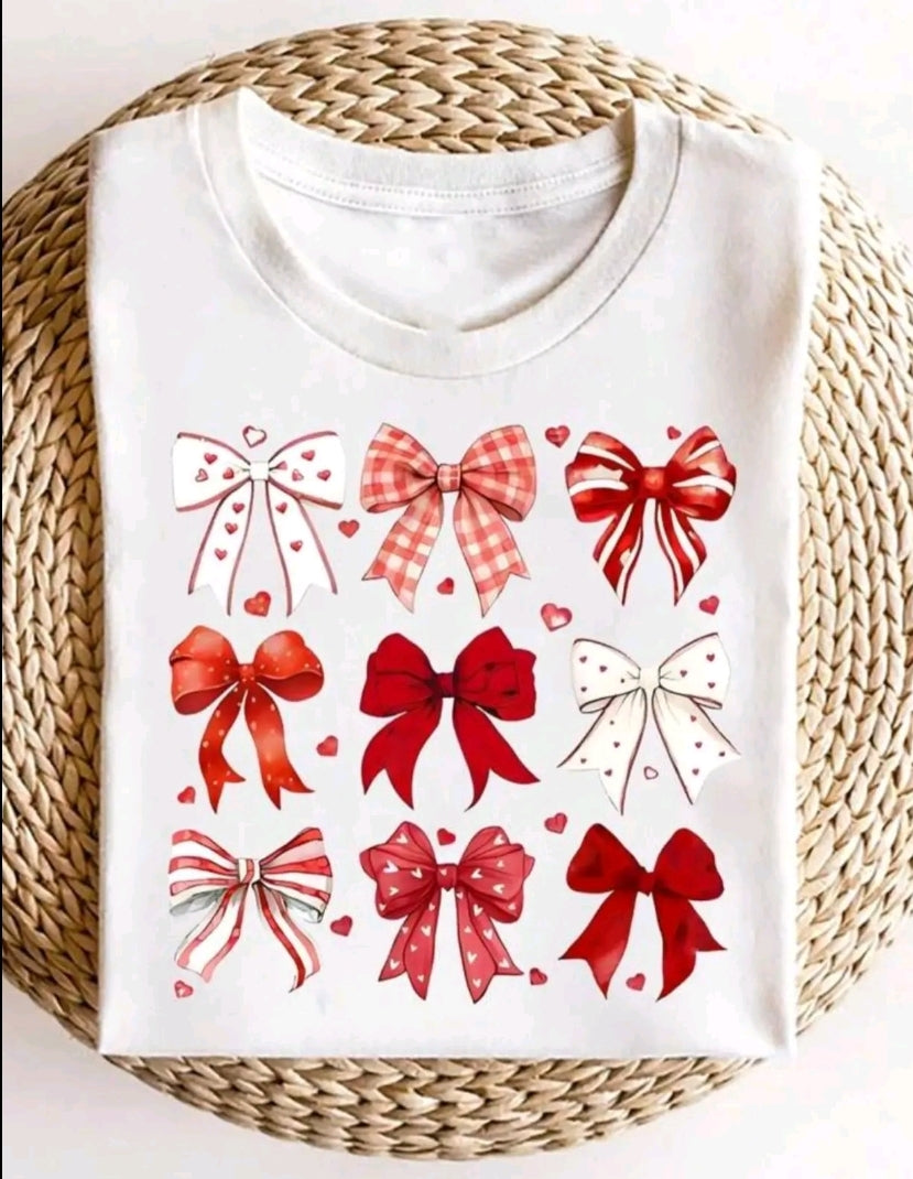 Añade un toque de dulzura a tu guardarropa con esta camiseta única. El estampado de lazos en tonos rojos y blancos es un diseño versátil y moderno que te permite crear looks diferentes. Combínala con tus jeans favoritos para un estilo relajado, o con una falda para un atuendo más chic y femenino. Es una prenda que fácilmente se convierte en el centro de atención.