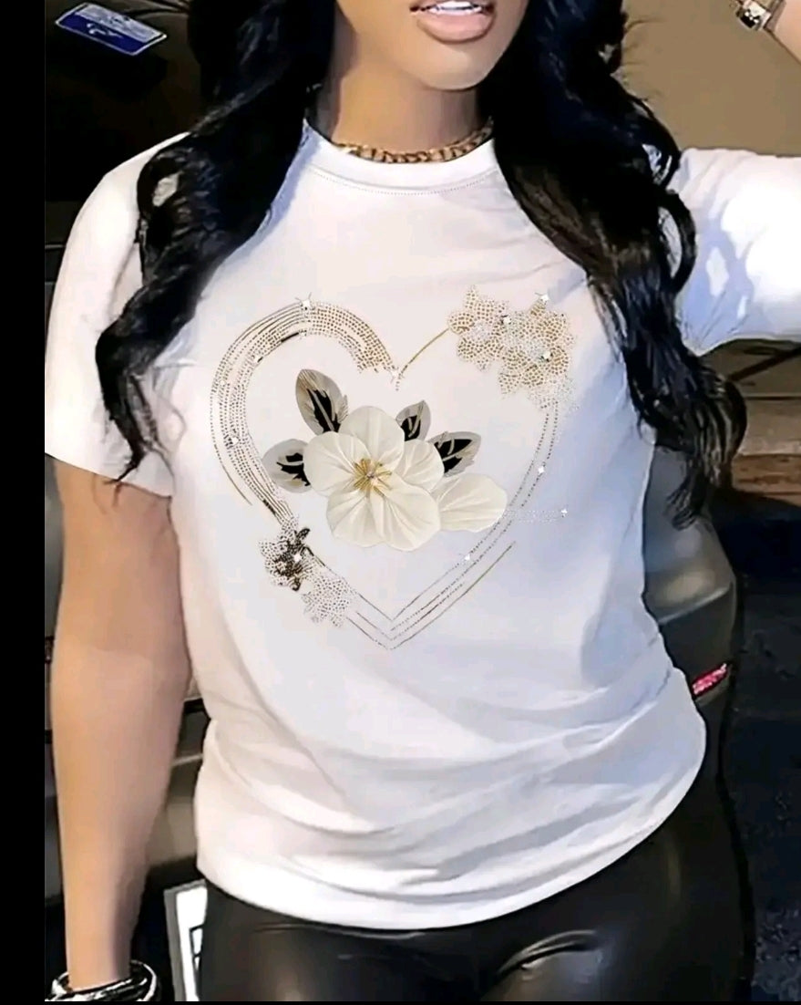 Camiseta de cuello redondo con Estampado floral en forma de corazón con flores de veranc