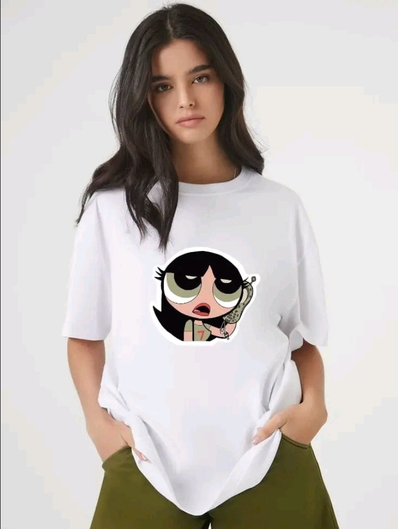 CAMISETA DE MUJER CON ESTILO DE CHICA REBEL DE CON DIBUJO ANIMADO PARA TODaS LAa edADEs