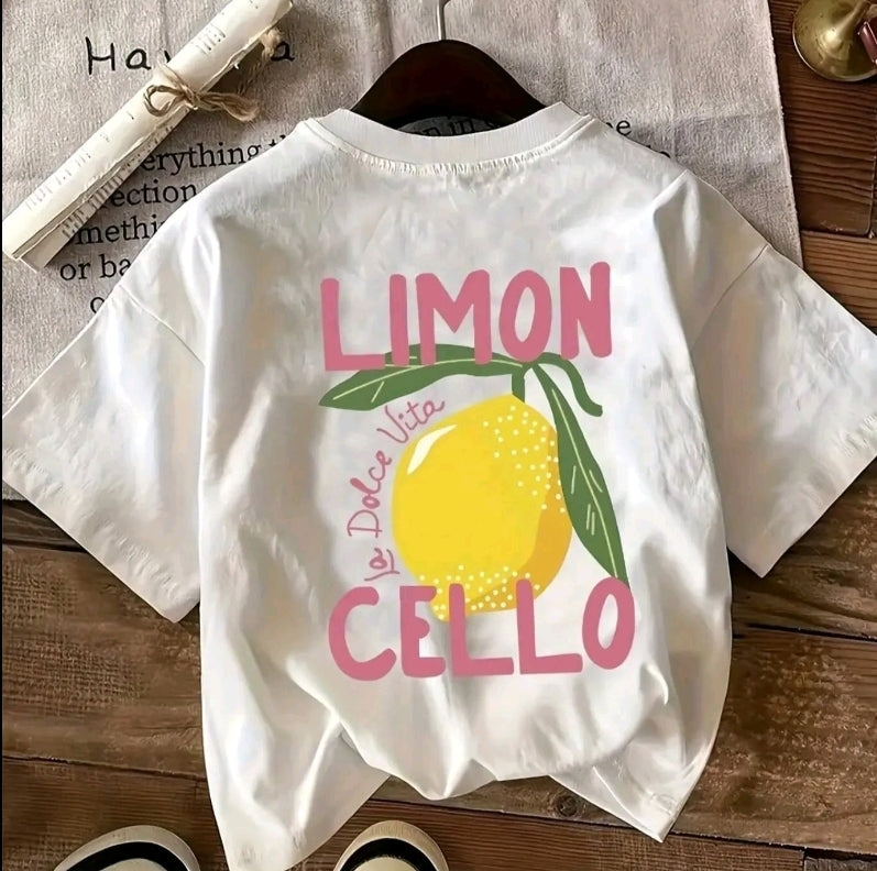 Camiseta Gráfica para Mujer con estampado limoncello - Blanca Cremosa Suave de Manga Cortay Cuello Redondo, Textura Lisa, Perfecta para Primavera v Verano
