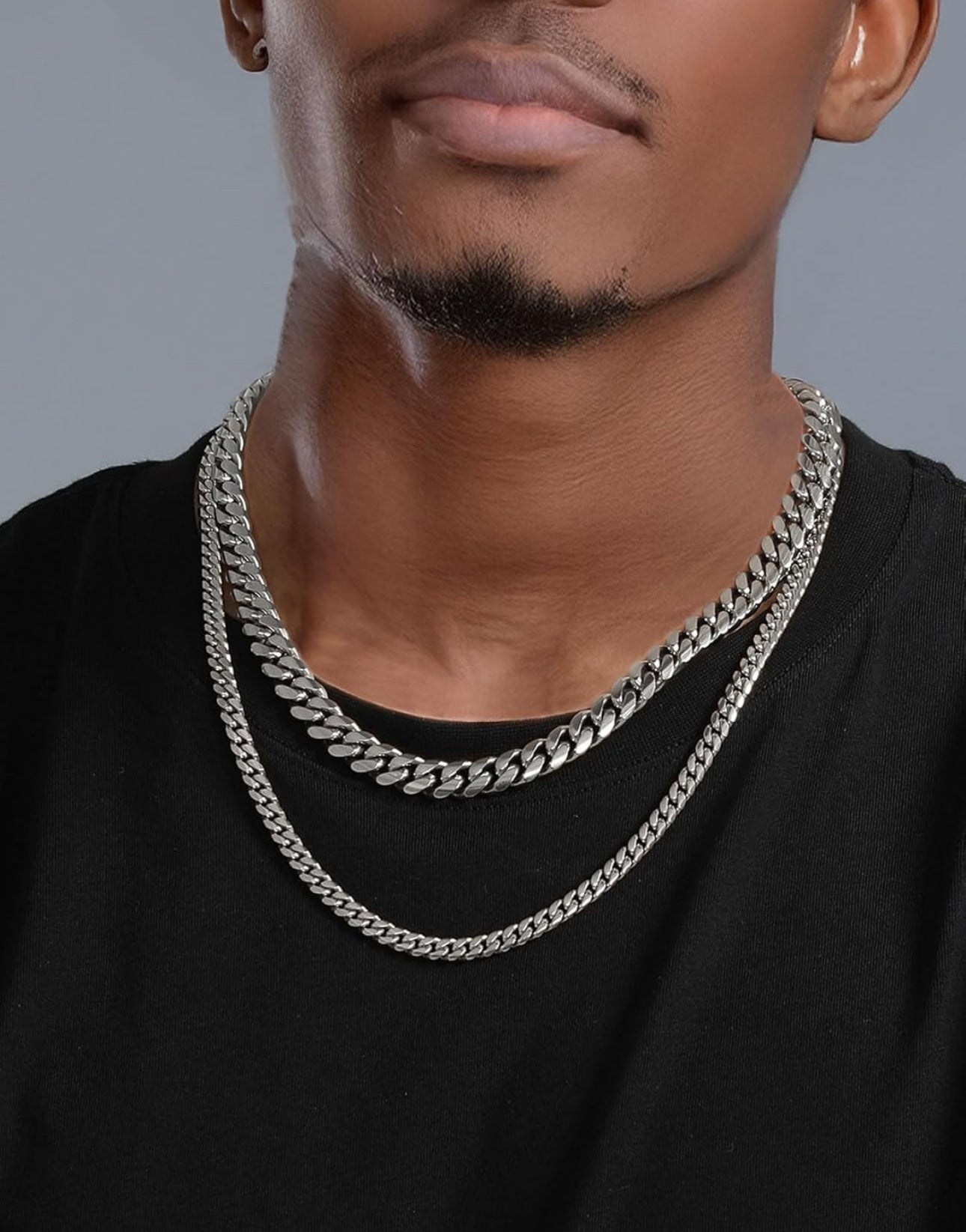 Collar Estilo Cubano Unisex De Acero Inoxidable Plateado