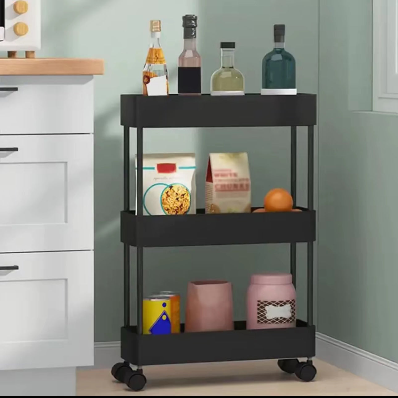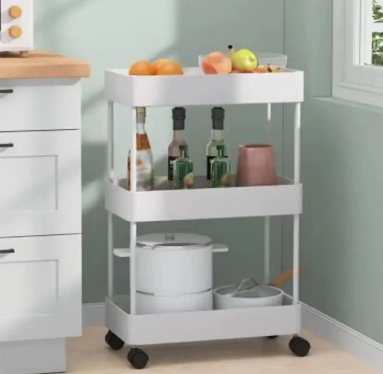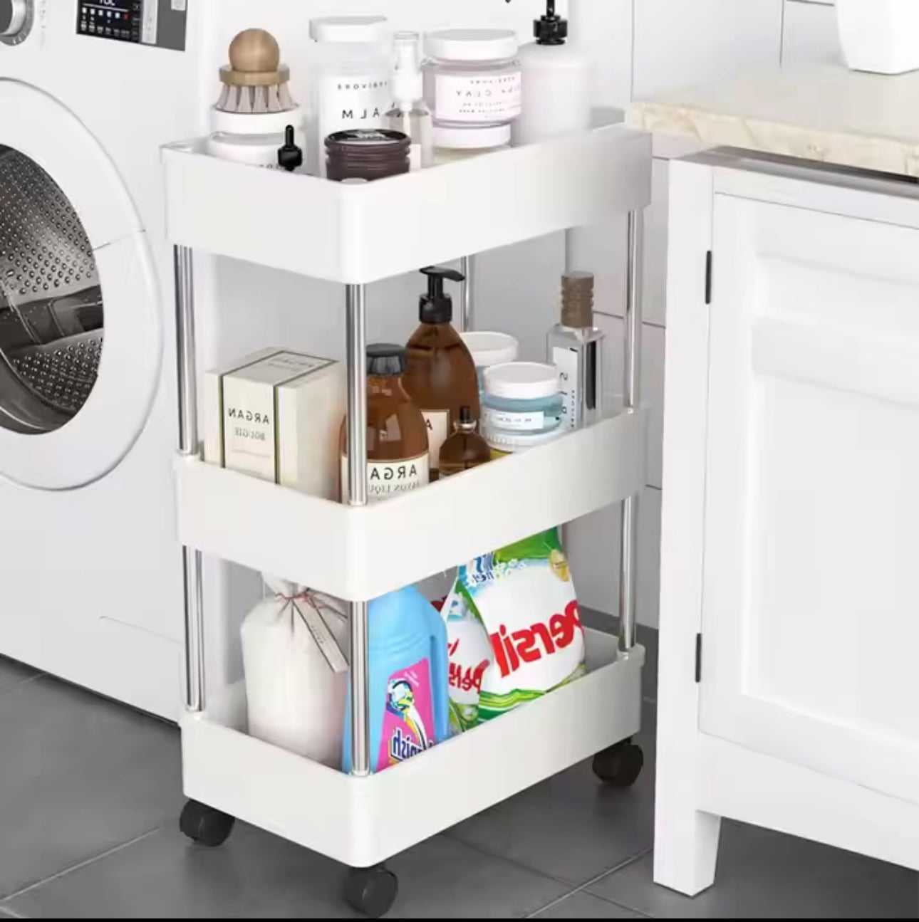 El carrito de almacenamiento multifuncional de tres capas es de tamaño extra grande y es adecuado para almacenar alimentos en la cocina, artículos de tocador en el baño, botellas en la sala de estar, macetas en el balcón y juguetes en el dormitorio, etc