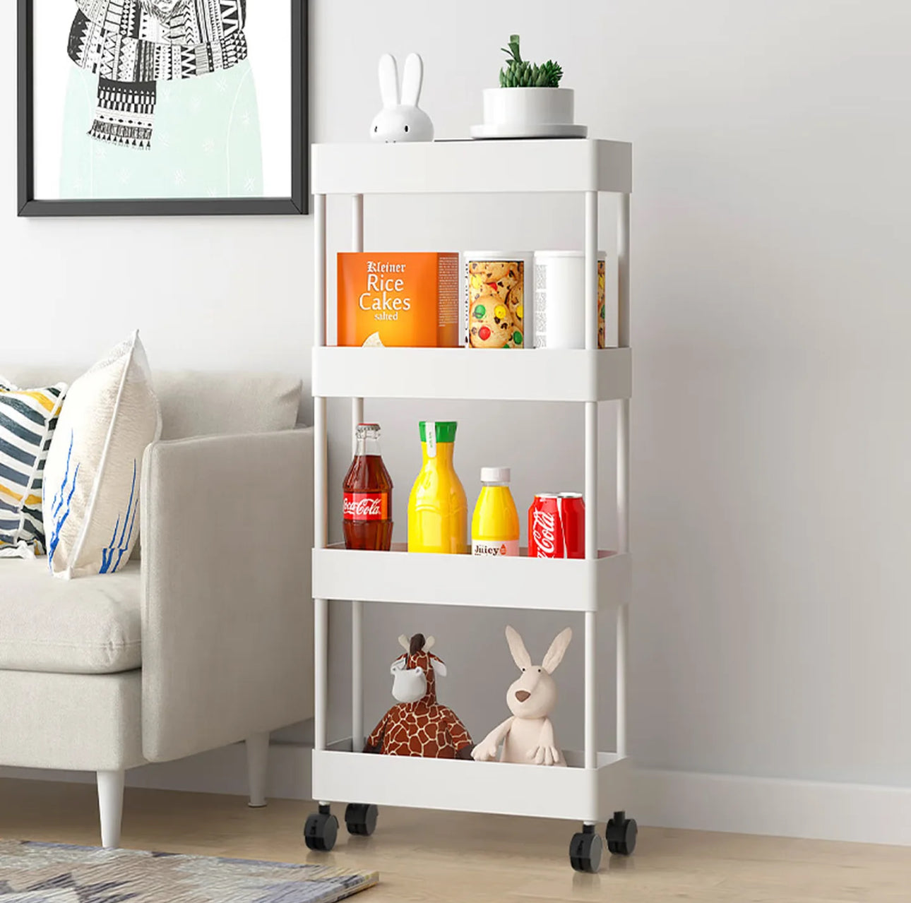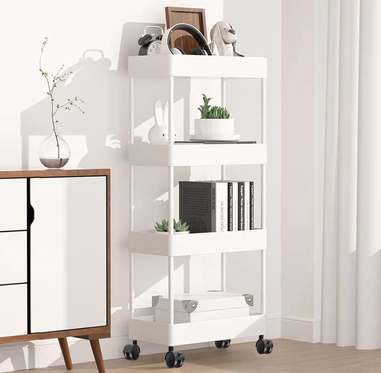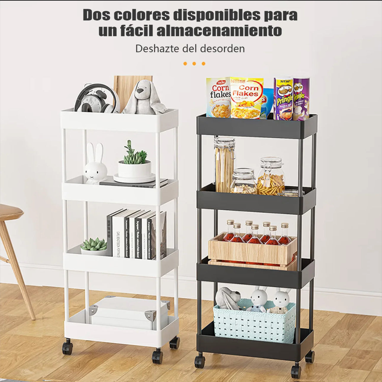 ¡Un maestro del espacio, almacenamiento sin esfuerzo! ¡Este estante de almacenamiento con carrito de cuatro niveles transforma el desorden en orden en segundos!
