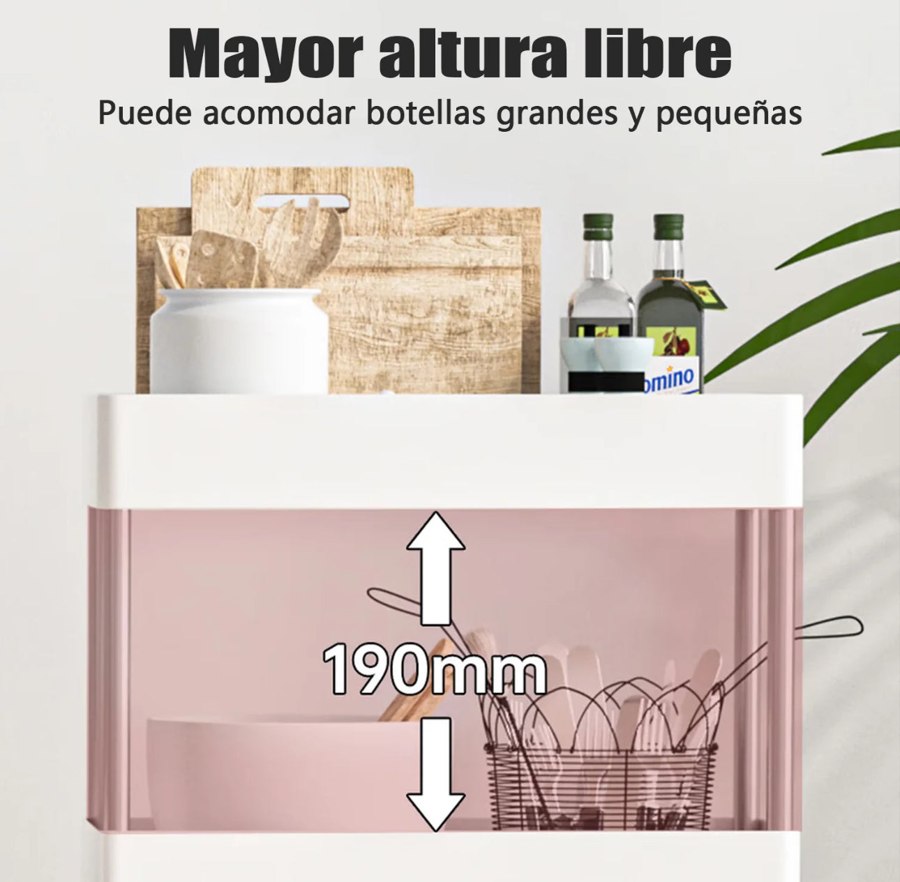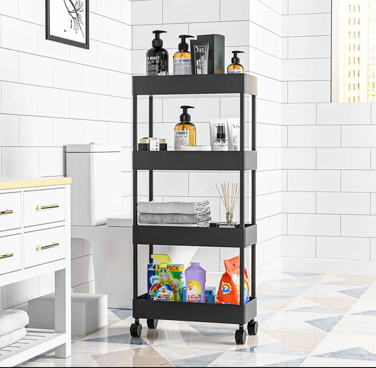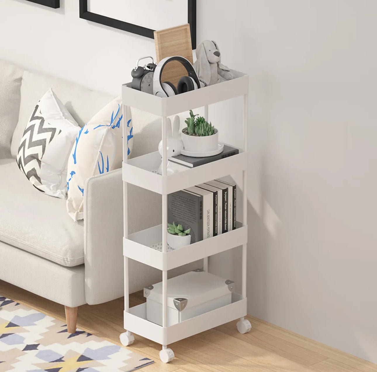 ¡Un maestro del espacio, almacenamiento sin esfuerzo! ¡Este estante de almacenamiento con carrito de cuatro niveles transforma el desorden en orden en segundos!