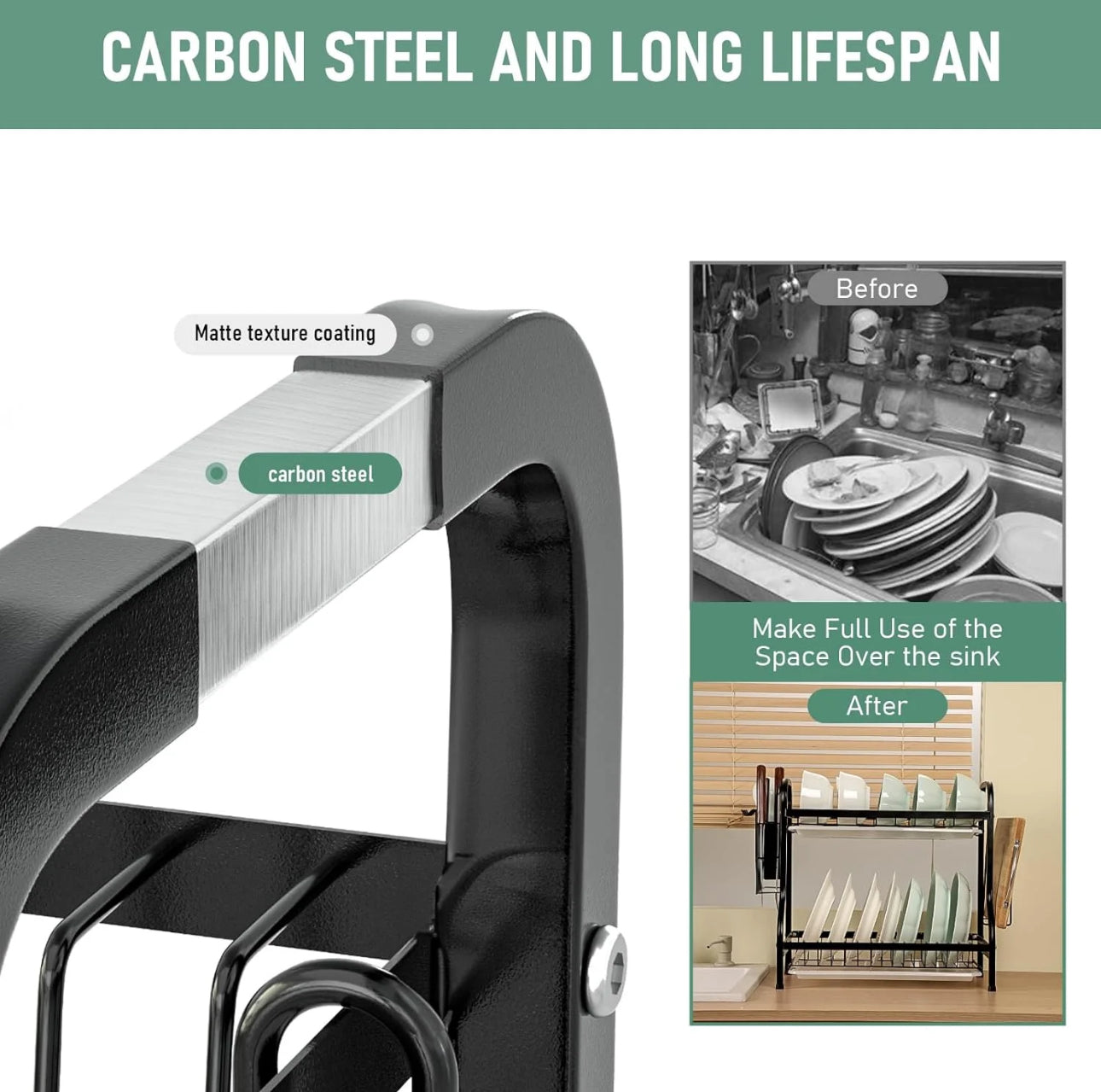 Estante de platos de cocina, estante de platos de acero inoxidable, estante de vajilla con mango por encima del fregadero, estante de platos de corte, bandeja de goteo