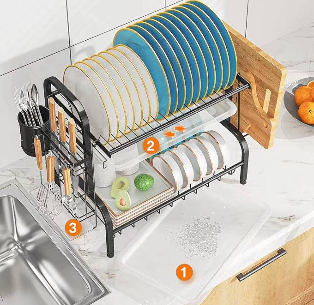 Diseño de gran capacidad: diseño de espacio de varias capas, que puede almacenar platos, vajilla, tablas de cortar, tazas, etc., para liberar el espacio de la encimera.