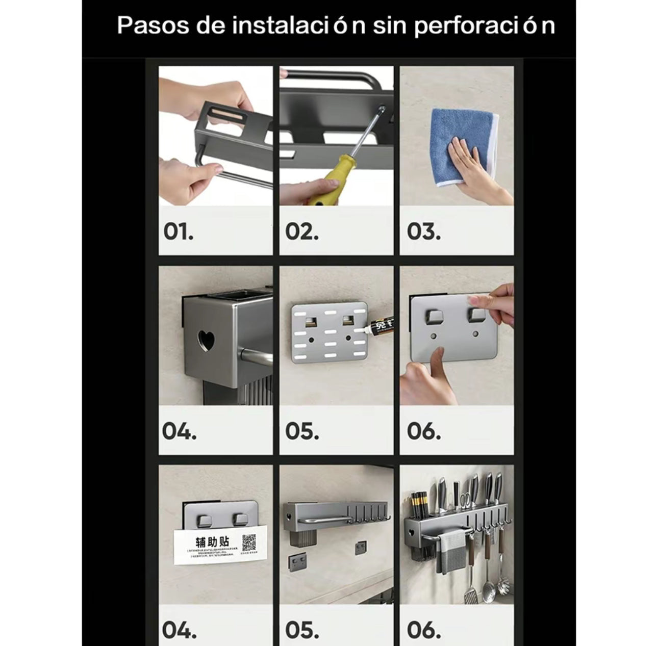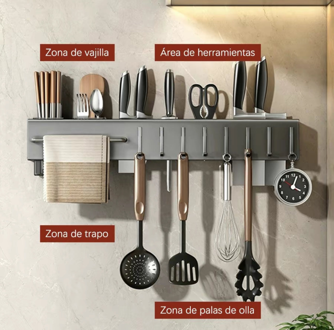 Organización Conveniente: Puedes organizar cuchillos, cubiertos, botellas de especias y condimientos de manera segura y accesible.