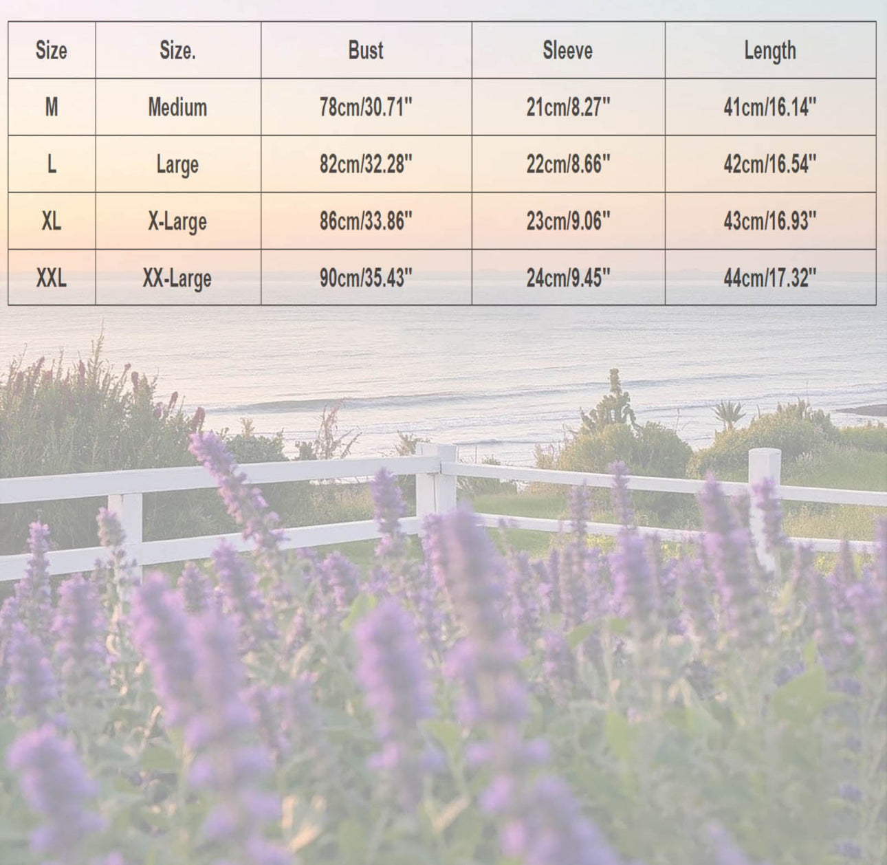 Talla: XL Busto: 86 cm/33,86 pulgadas Manga: 23 cm/ 9,06 pulgadas Longitud: 43 cm/16,93 pulgadas