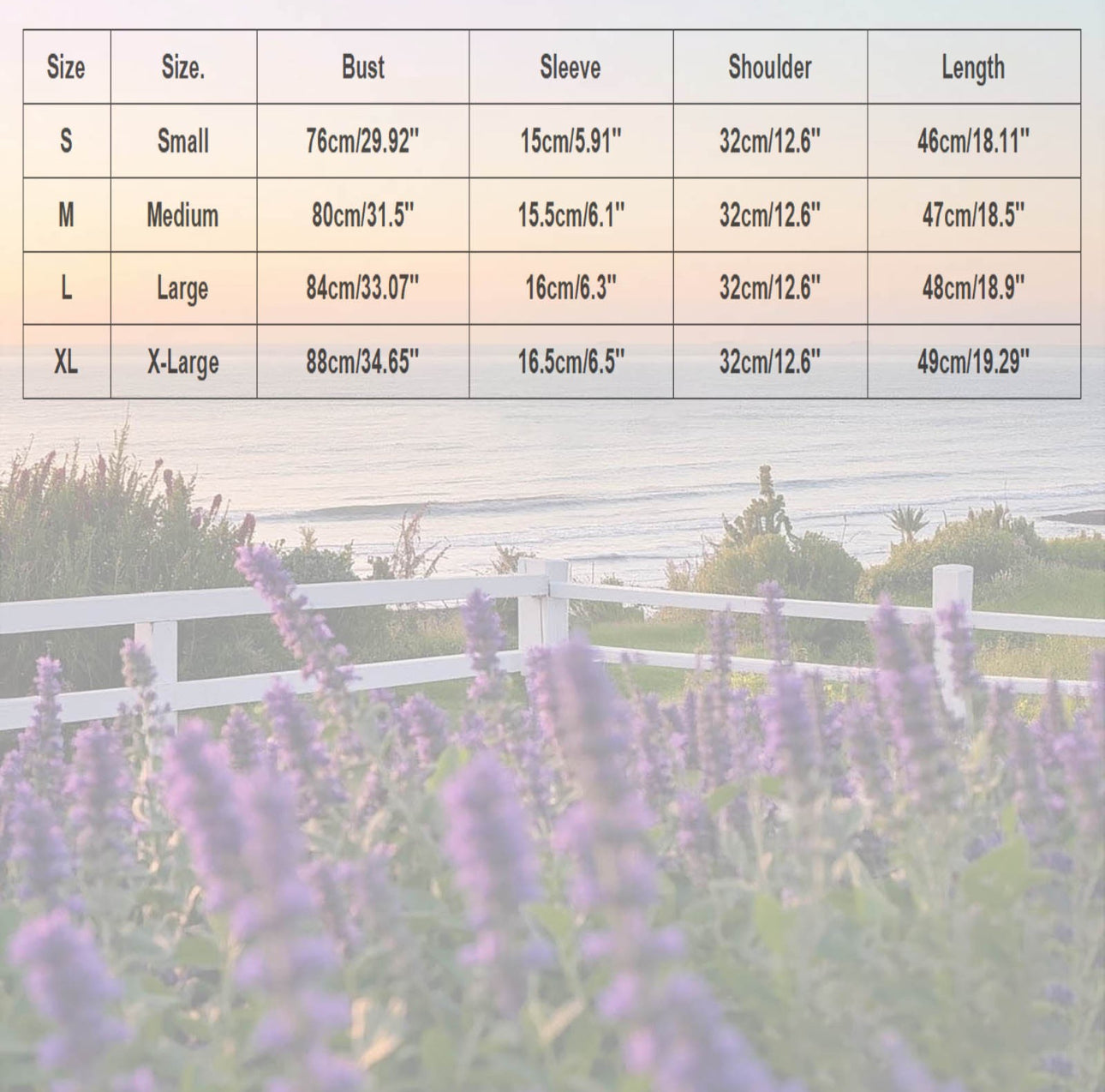 Talla: S Busto: 76 cm/29,92 pulgadas Manga: 15 cm/5,91 pulgadas Hombro: 32 cm/12,6 pulgadas Longitud: 46
