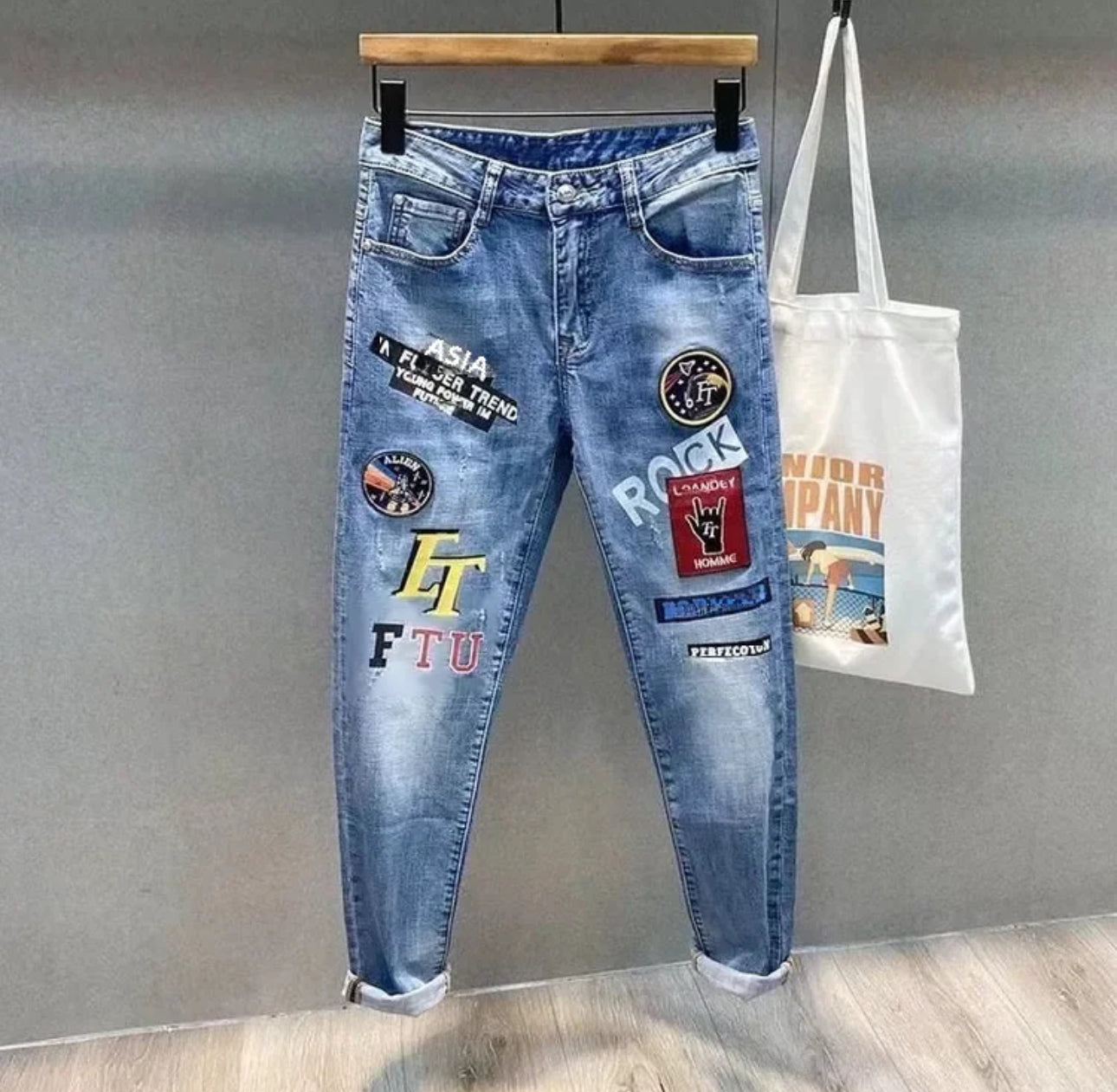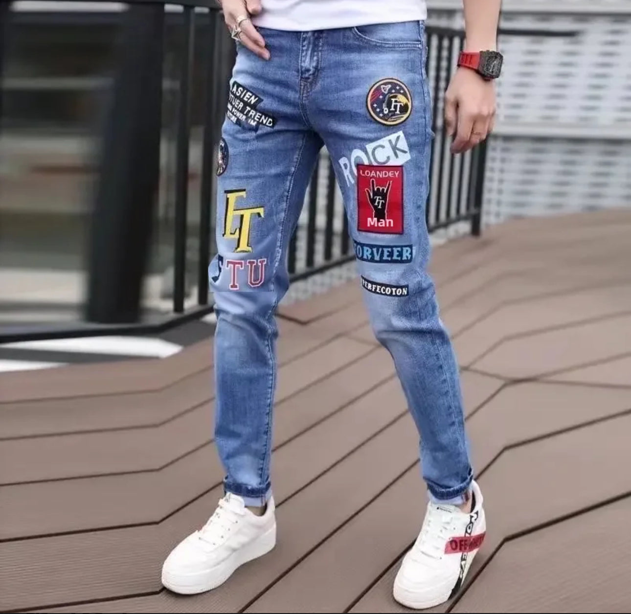 INTERNACIONAL Vaqueros Ajustados Con Estampado De Grafiti Para Hombre