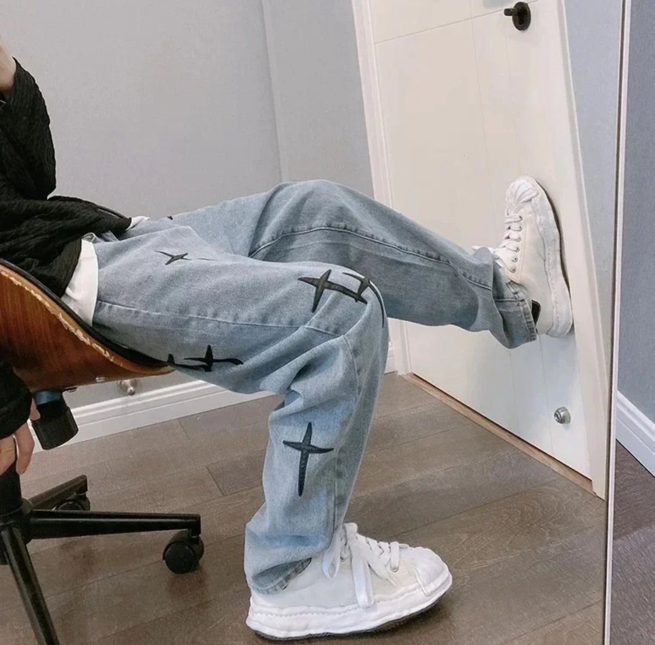 - ESTILO COREANO, PANTALONES ANCHOS MODERNOS DE NUEVE PIEZAS -VAQUEROS CASUALES PARA PRIMAVERA/OTOÑO, MODA JUVENIL