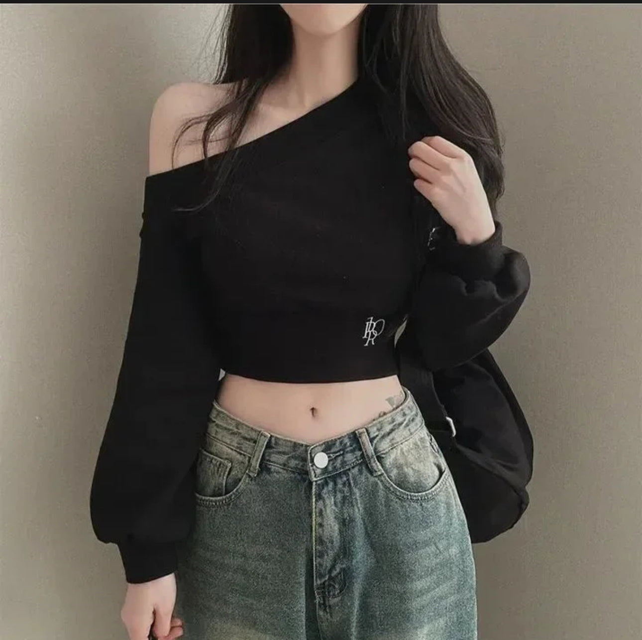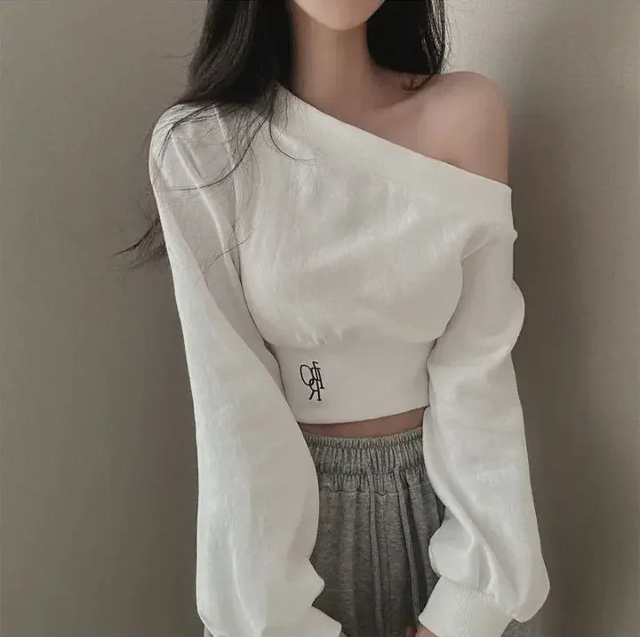 Otoño Nuevo Diseño Cintura Expuesta Hombro Adelgazante