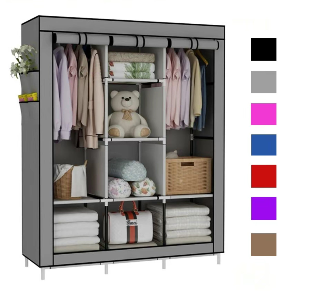 ¡Divisiones AMPLIAS! El nuevo ropero de cuenta con secciones de gran capacidad: las 2 divisiones principales son ideales para colgar variedad de prendas y, las 6 secciones cuadradas para ordenar ropa de cama, toallas, zapatos, peluches o bolsos.
