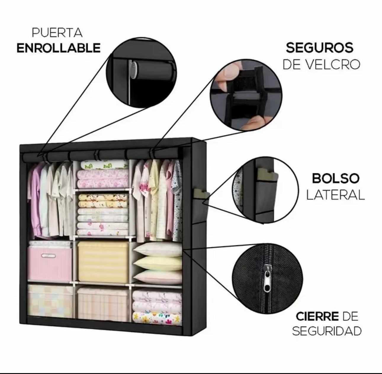 6 secciones internas para organizar tu ropa.