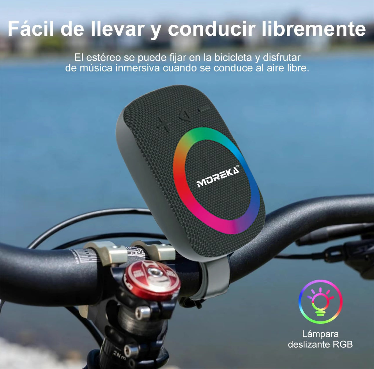 - Diseño portatil y resistente: Lleva tu música contigo y protege tu altavoz MOREKA-W3S de daños. Es perfecto para usar al aire libre, ya sea en senderismo, playa, o en diferentes espacios de tu hogar como el dormitorio, cocina, baño, barco o incluso en un campo de golf.