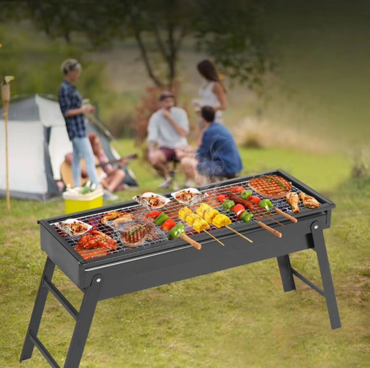 Parrilla De Carbón Portátil Plegable Barbacoa Al Aire Libre Grande