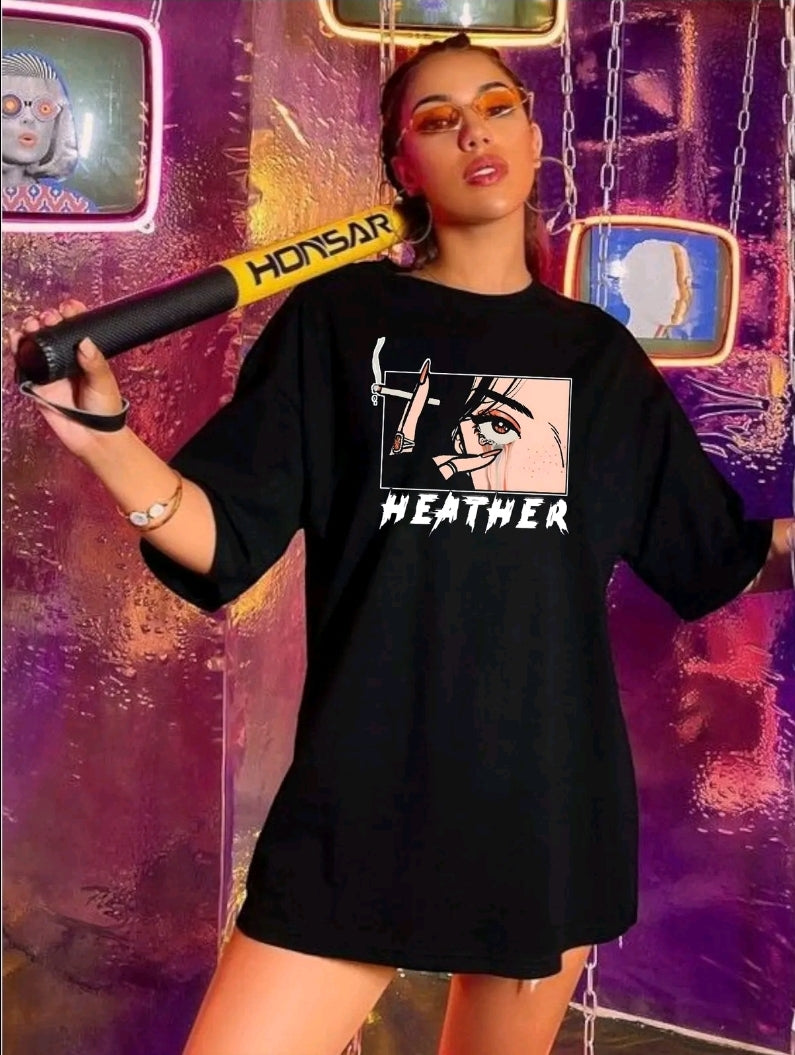 PLAYERA DE CUELLO REDONDO DAMA PARA TODAS LAS EDADES ESTILO URBANO CON ESTAMPADO DE A HEATHER