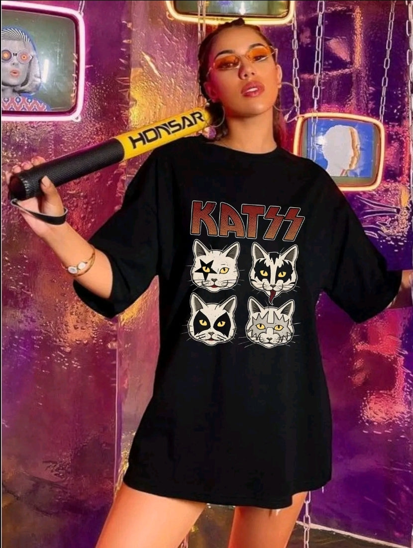 PLAYERA DE CUELLO REDONDO DAMA PARA TODAS LAS EDADES ESTILO URBANO CON ESTAMPADO DE KATSS