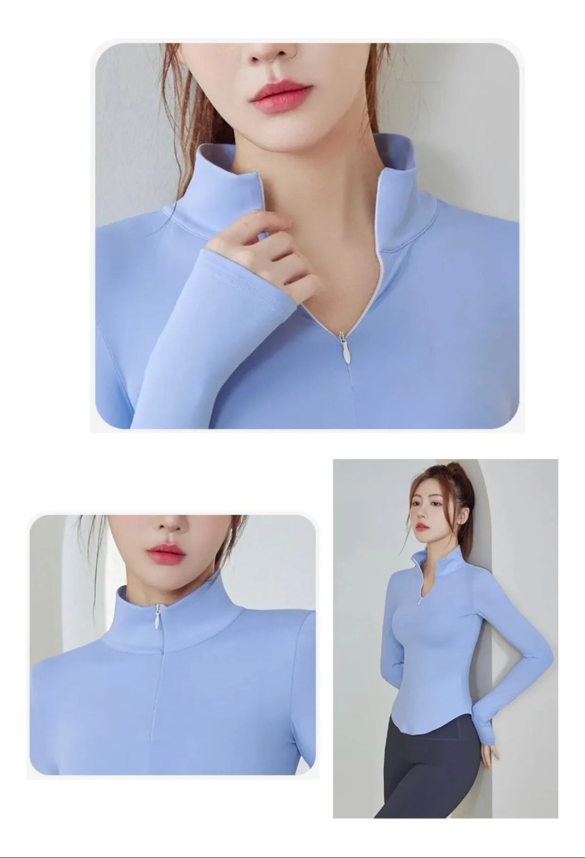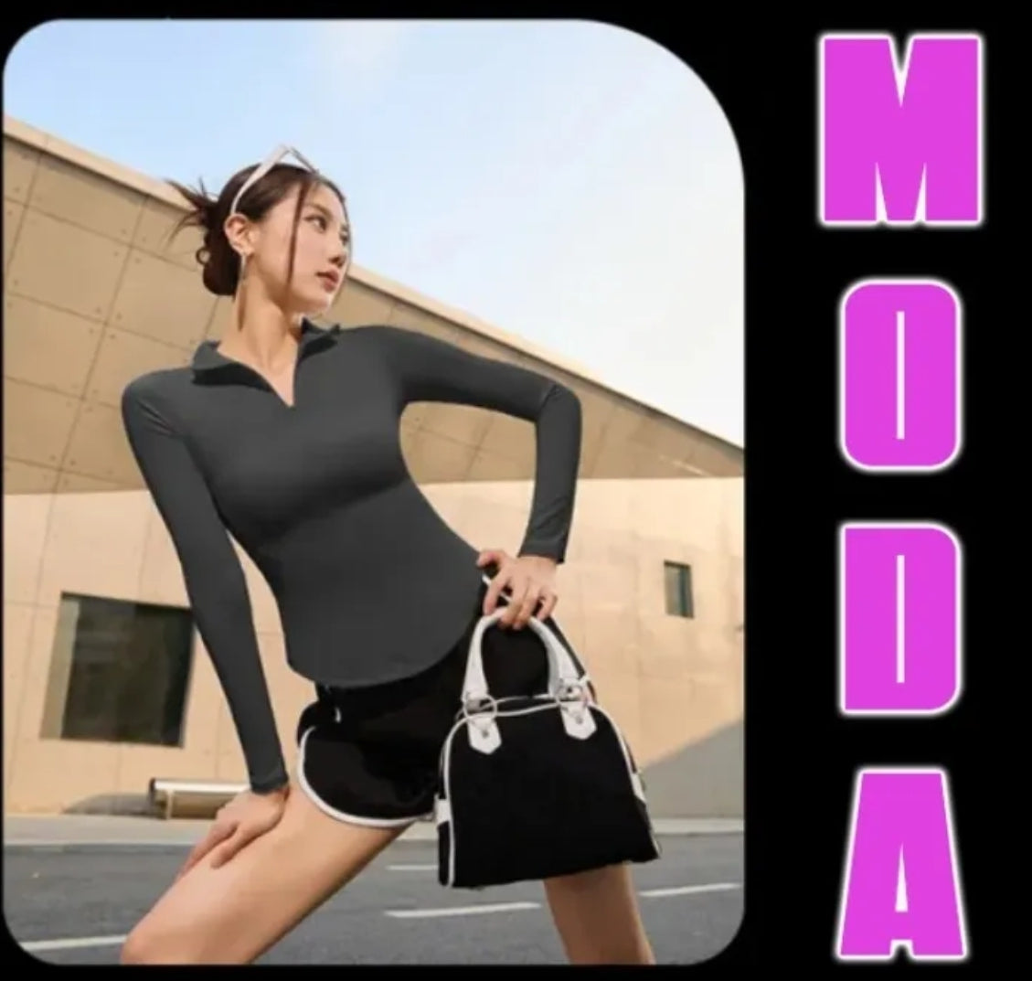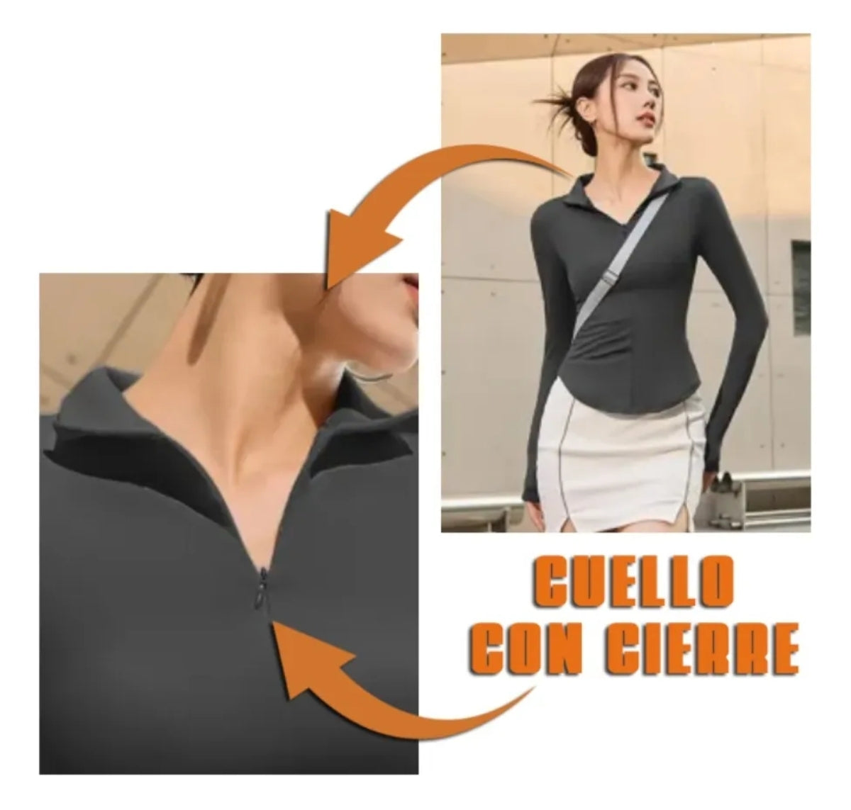 Corte Curvo de Abajo Cierre en el Cuello Playera Manga Larga Luce tu Cuerpo !!l Luce Sexy !! Casual, Diario, Viaje , Fiesta... Gym., Correr , Deportivo , Entrenar .... Playera de Secado Rápido !l MODA Para cualquier Ocasión
