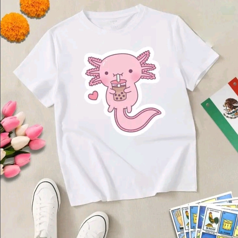 Diseño único: PLAYERA PARA DAMA CON DISEÑO DE AJOLOTE BEBIENDO Esta plavera presenta un diseño exclusivo de un ajolote bebiendo. Perfecta para expresar tu estilo personal