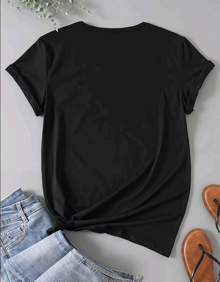 playera para mujer con estampado de Mujer cuello redondo de poliéster, manga corta, patrón de alfabeto, camiseta casual de verano para usar en casa