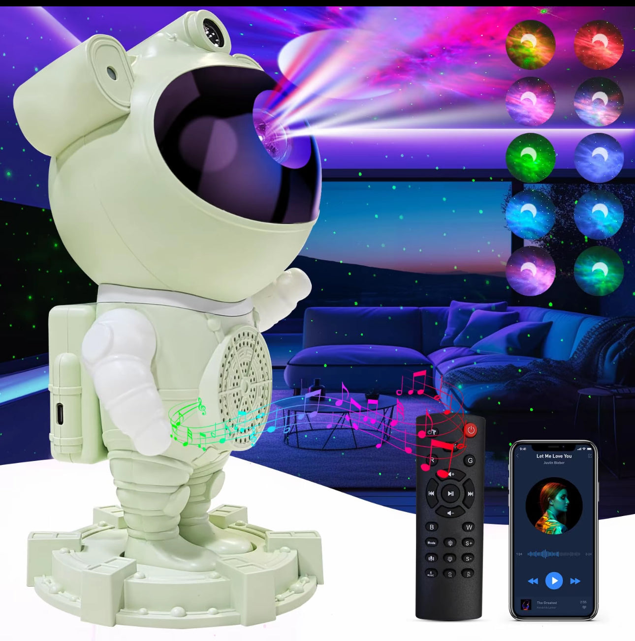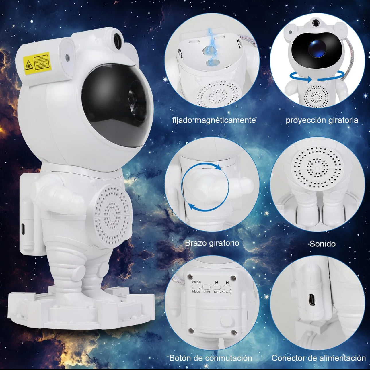 Nombre: Lámpara de proyección estrella astronauta con altavoz bluetooth.
