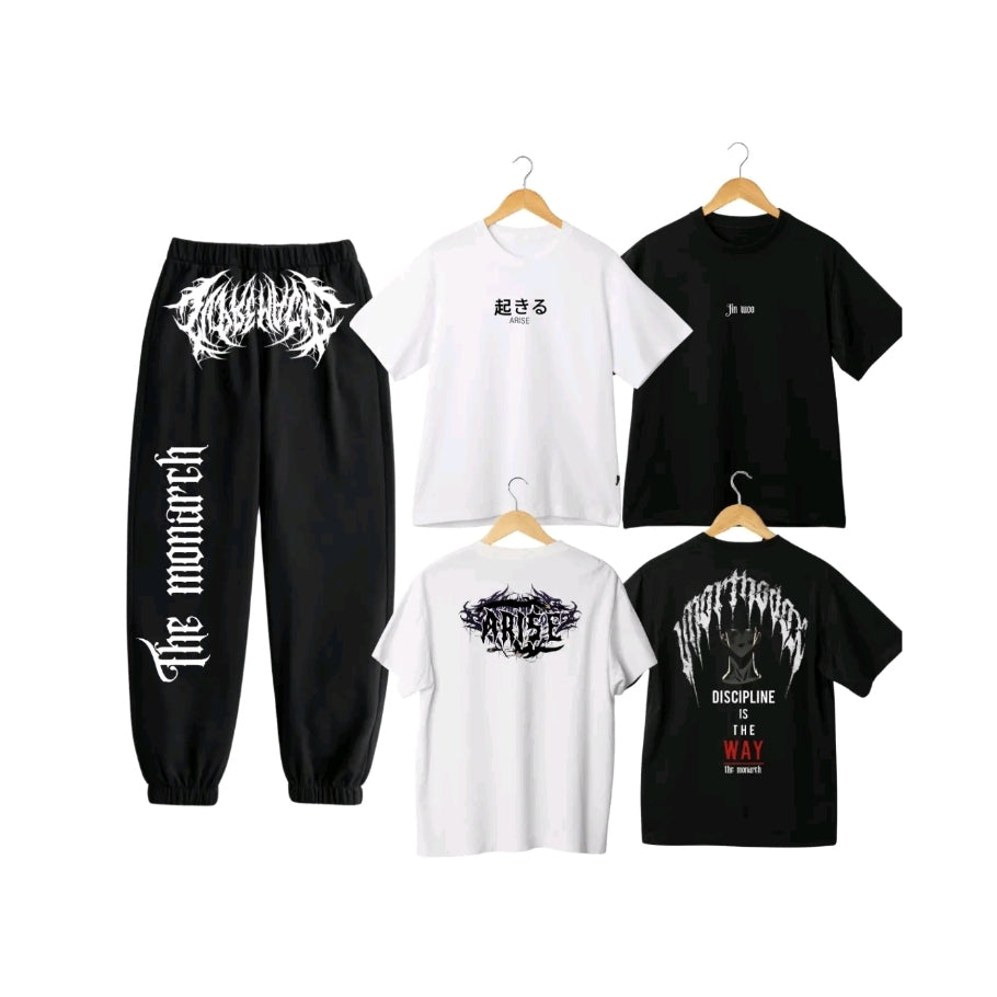 Lleva tu poder al siguiente nivel con este set de ropa inspirado en uno de los webtoons más aclamados, Solo Leveling. Este conjunto captura la estética oscura, poderosa y el ascenso de Jinwoo, el Rey de las Sombras.