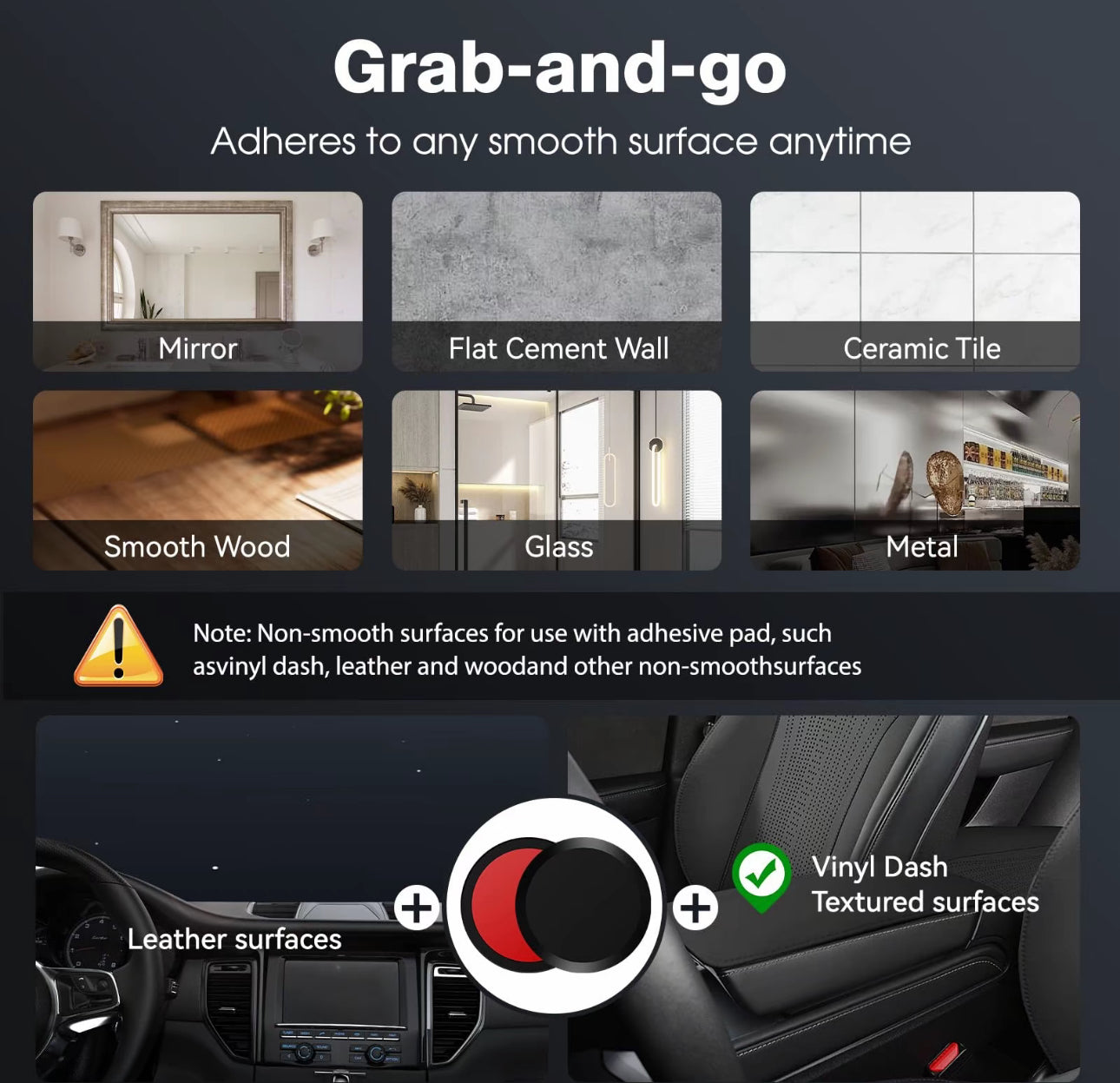 Soporte magnético de succión al aspiradora, Envío de placa magnética anular plegable y retráctil manos libres con ventosa para coche, gimnasio, espejo, superficie lisa, compatible con iPhone Android y todos los teléfonos