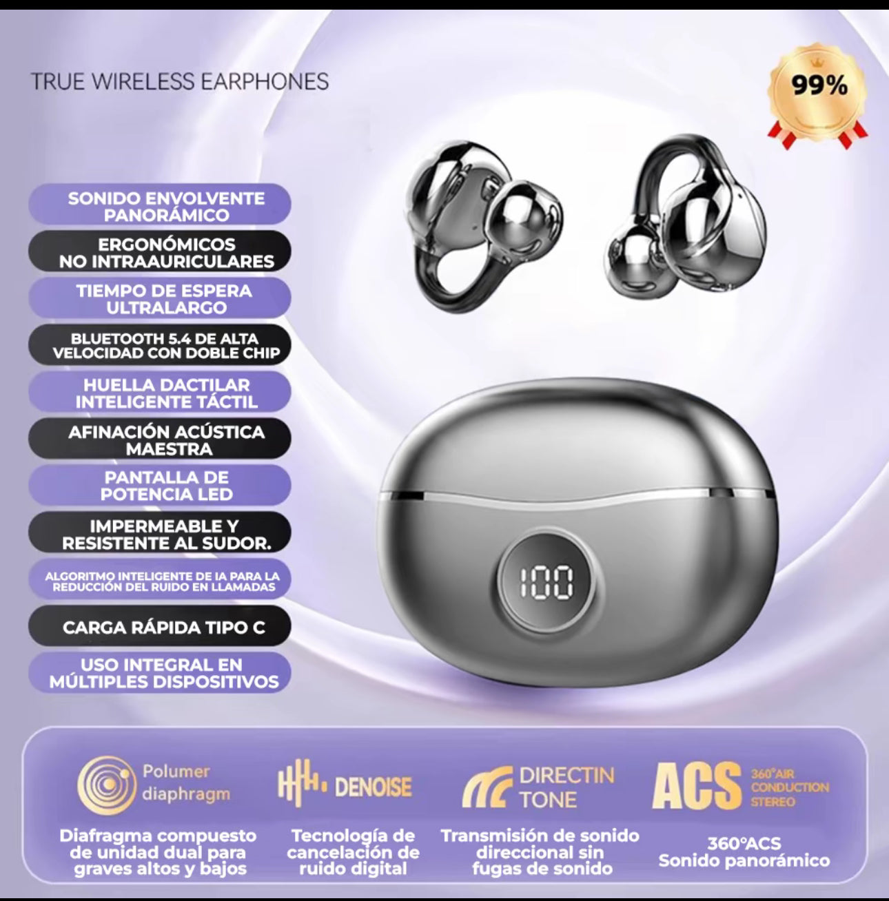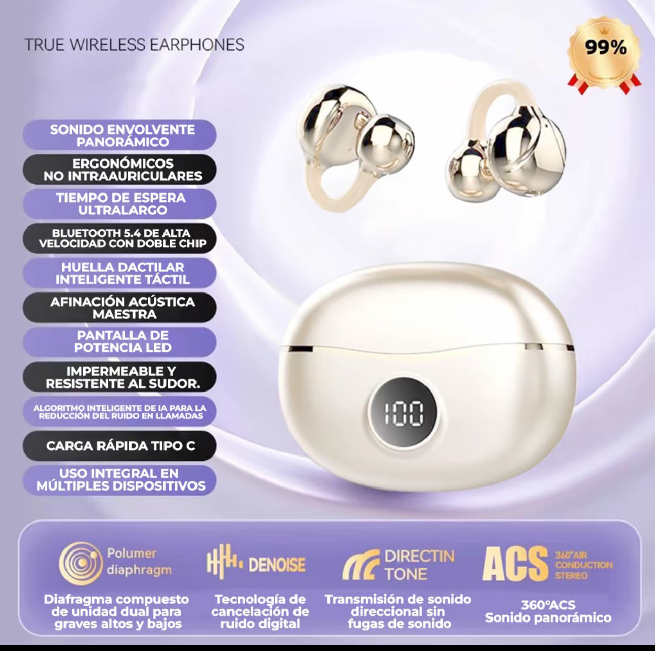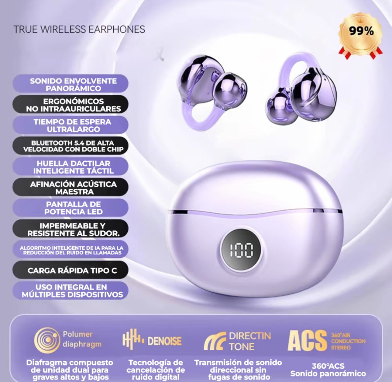 VICLOOK D151 Audífonos Inalámbricos Clip Ear audífonos de gancho para correr Diseño ergonómico ultra ligero, HiFi sonido 360°, cómodos sin dolor, táctil, impermeables y batería de larga duración.