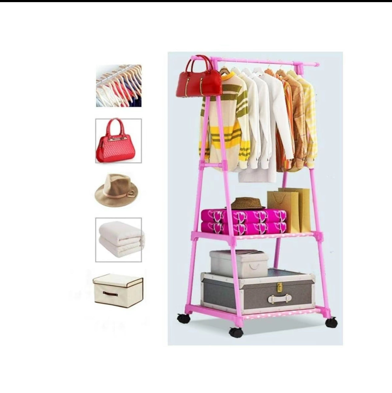 RACK TRIANGULAR CON LLANTAS CLOSET ORGANIZADOR