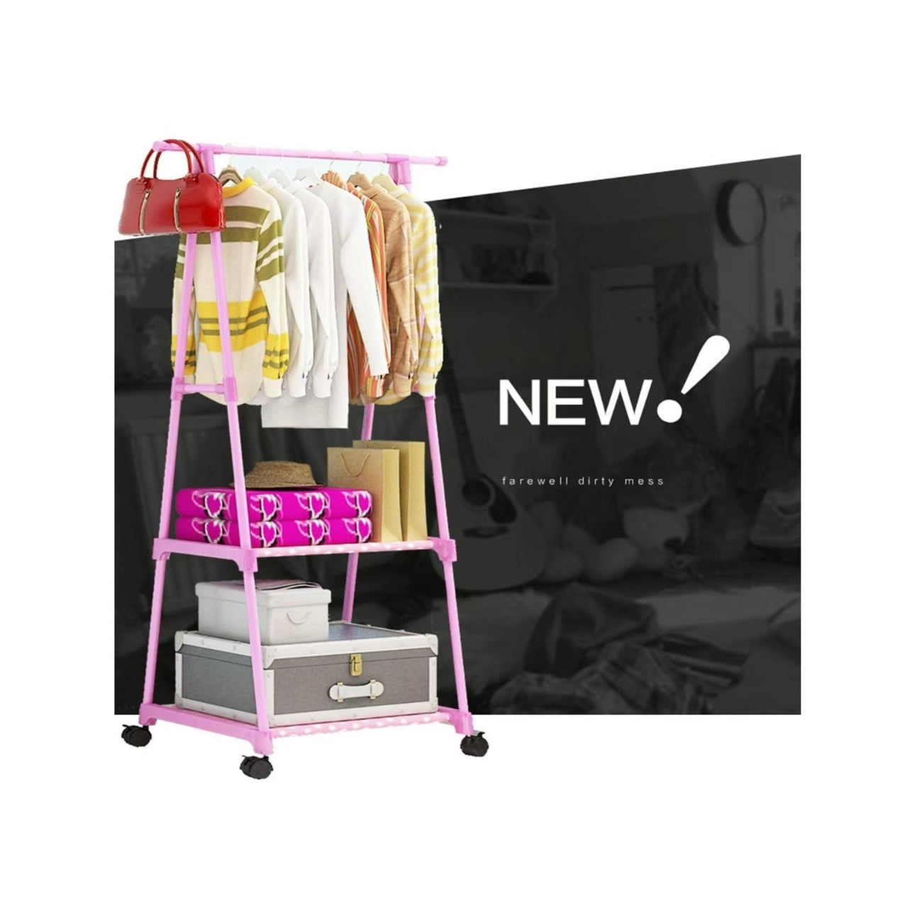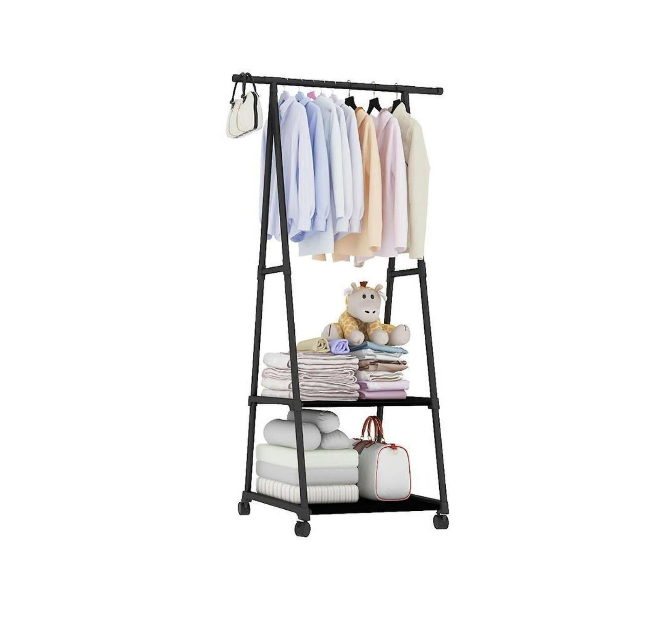 YUQING.FC Closet Tendedero Perchero Rack Doble Ropa Con Llantas Triangulo