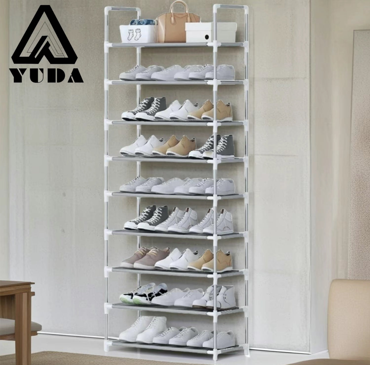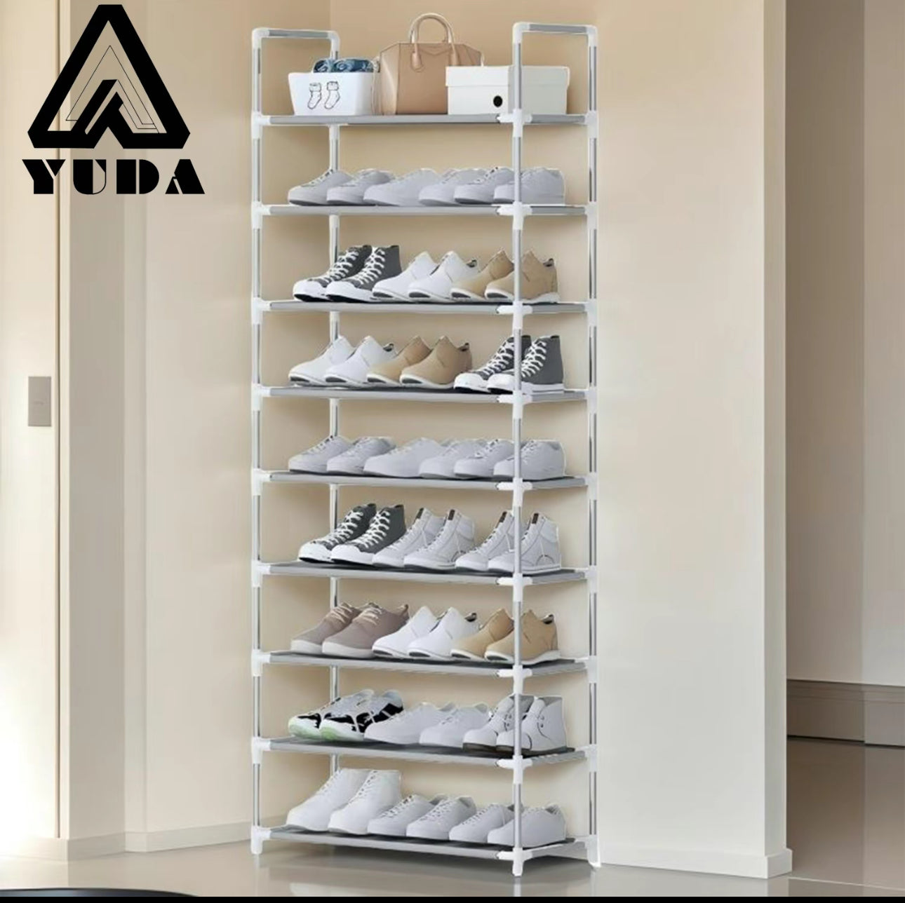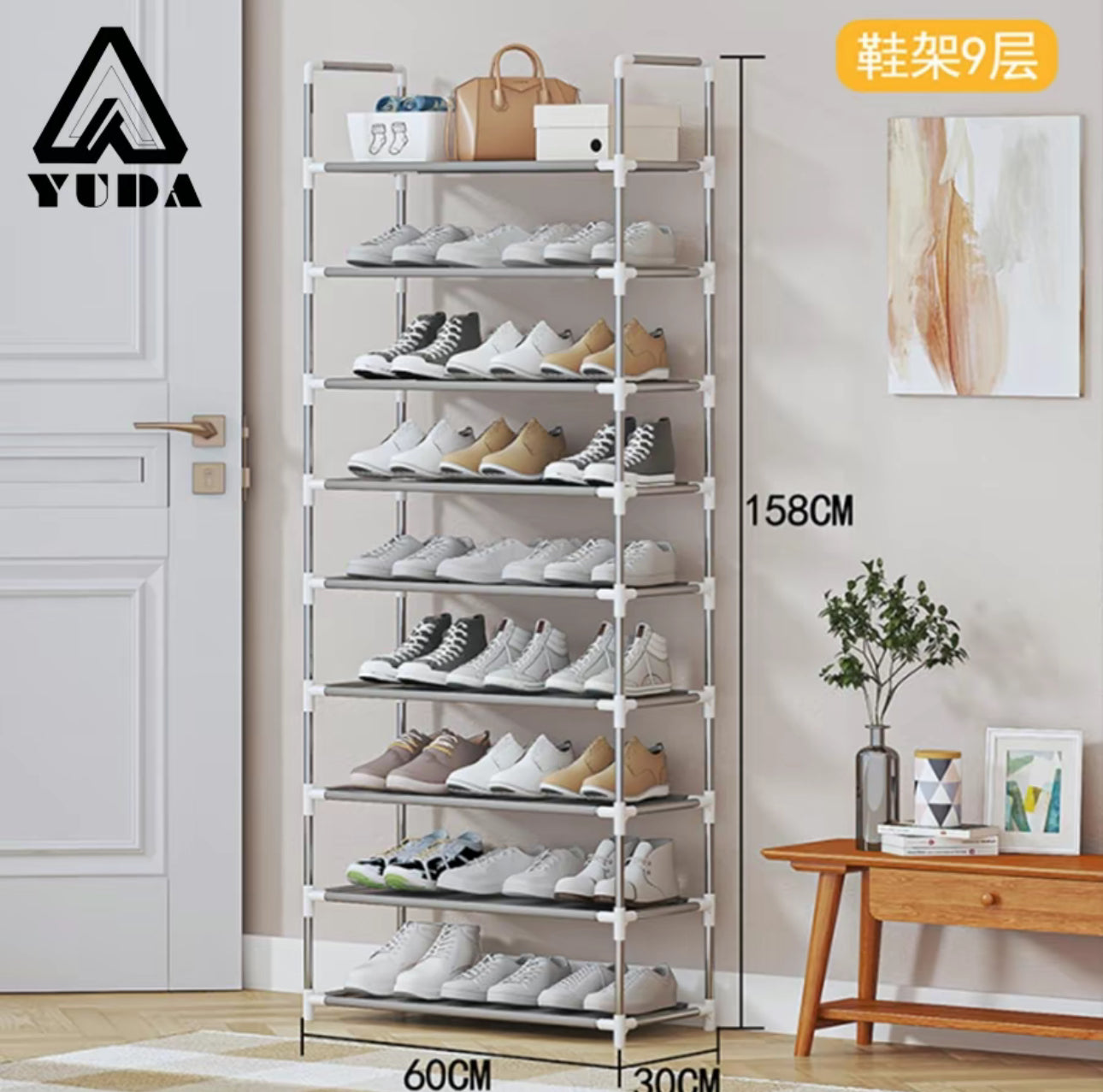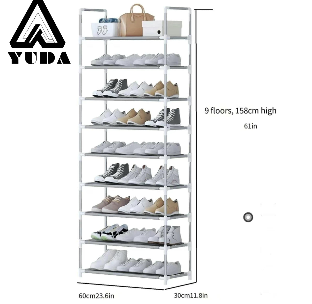 Zapatero de 9 capas, estante de almacenamiento a prueba de polvo: puede contener hasta 27 pares de zapatos, resistente y duradero, ahorra espacio, mantiene su guardarropa ordenado, soporte duradero, paño a prueba de polvo para evitar el polvo