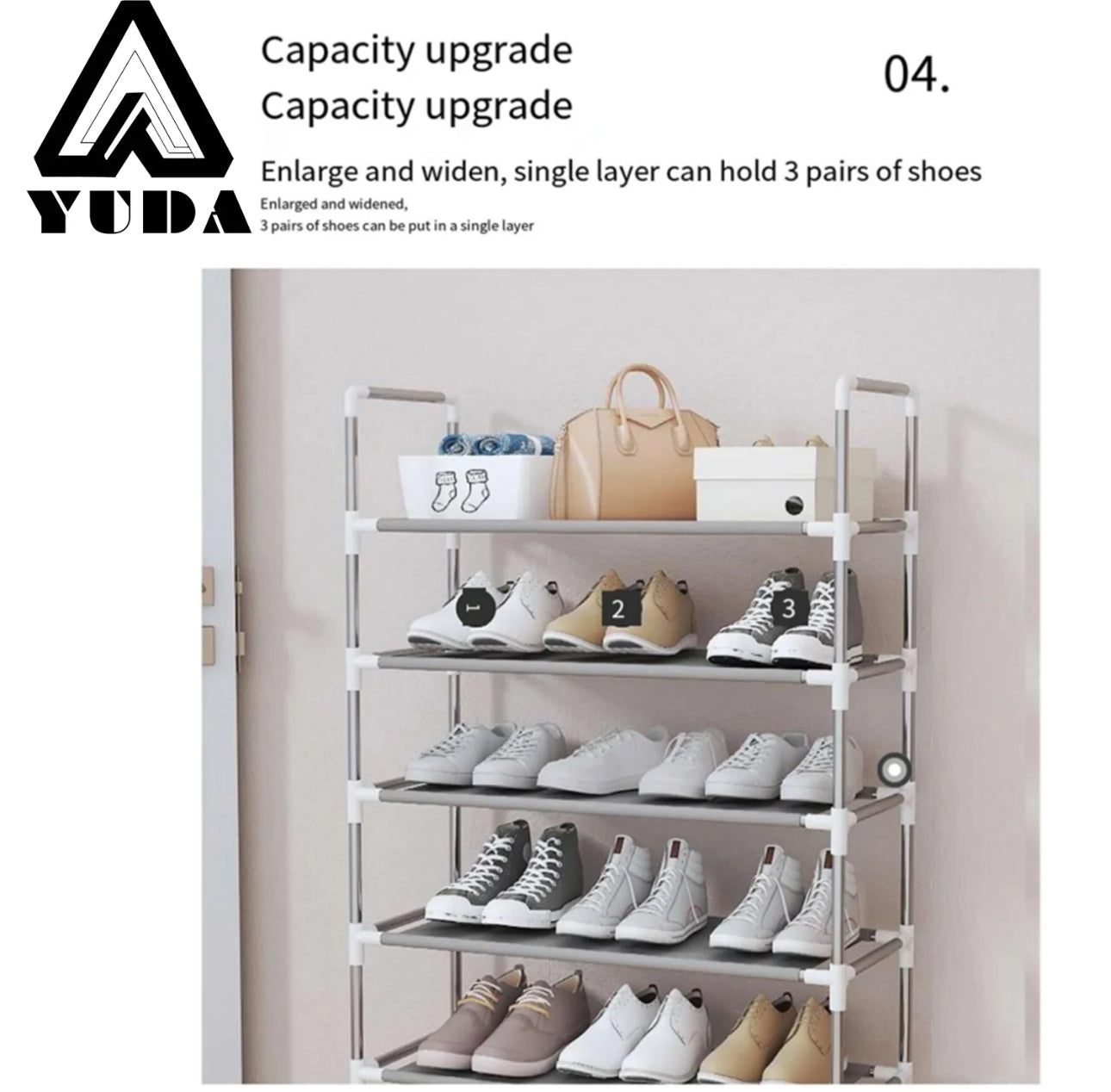 Olvídate del desorden en tu armario. Con este zapatero podrás aprovechar al máximo cada rincón del espacio. Su diseño eficiente no solo ayuda a mantener tus zapatos organizados sino que también contribuye a un ambiente más ordenado y cómodo.