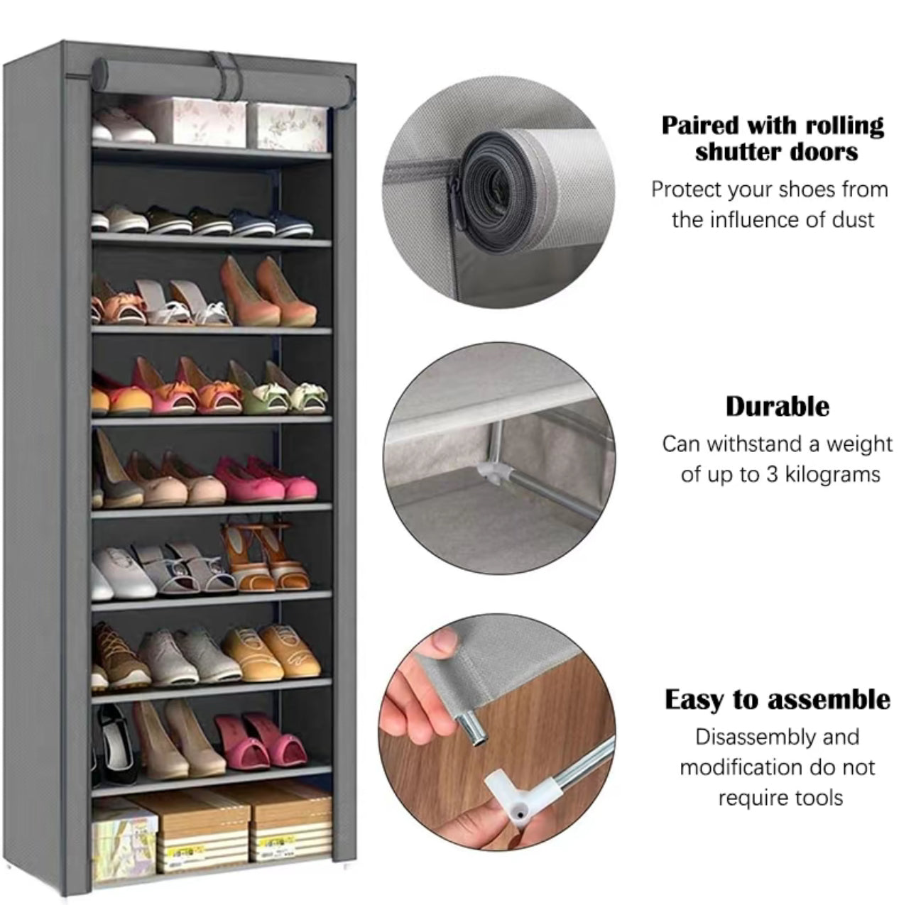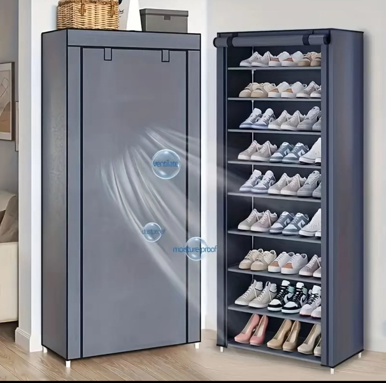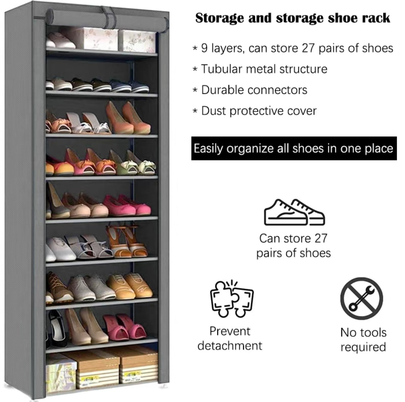 Zapatero de metal de 9 capas con cubierta antipolvo, caja de almacenamiento de zapatos no tejido de gran capacidad que ahorra espacio, adecuado para el almacenamiento de zapatos en el hogar y el dormitorio, fácil de monta