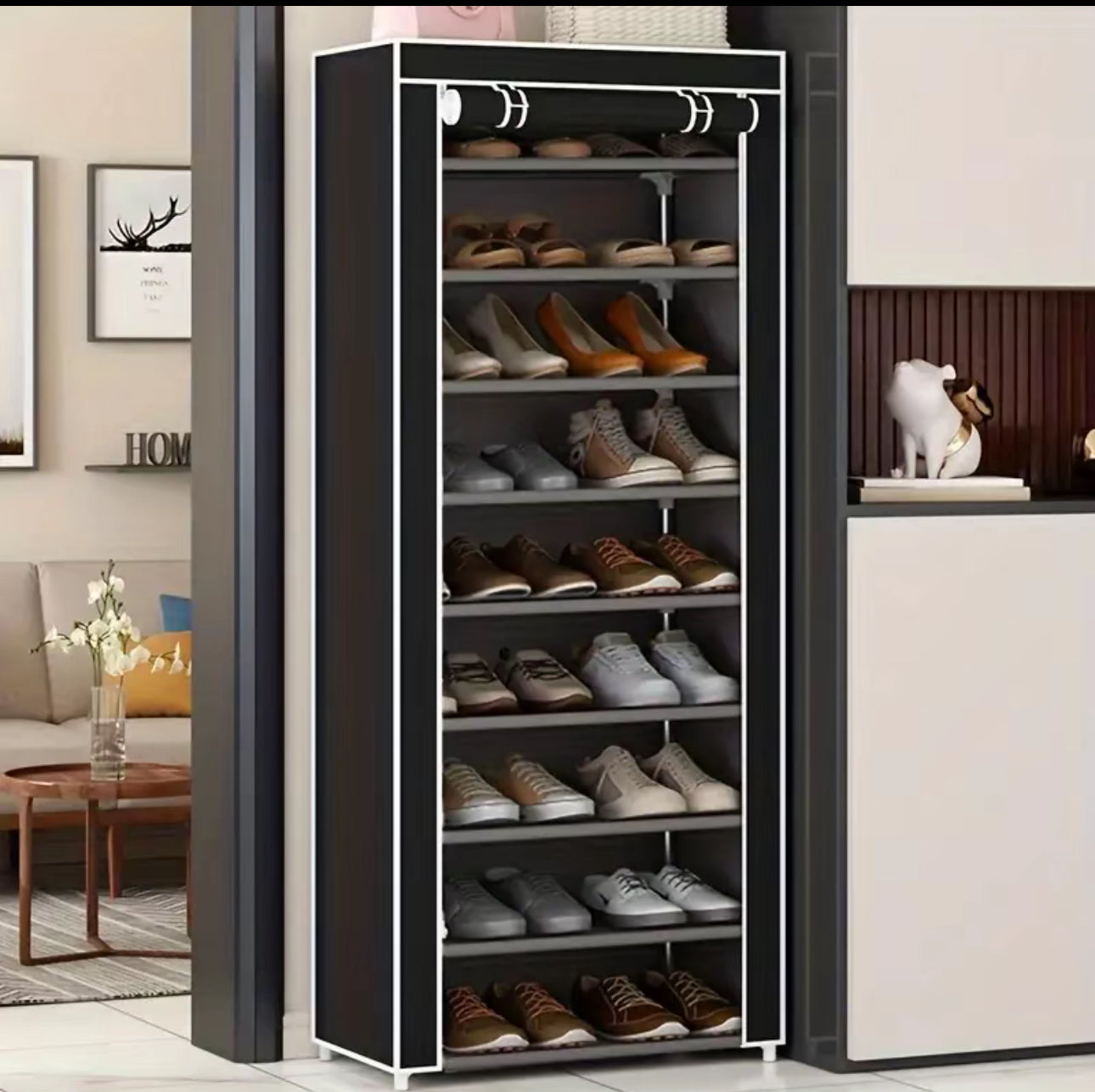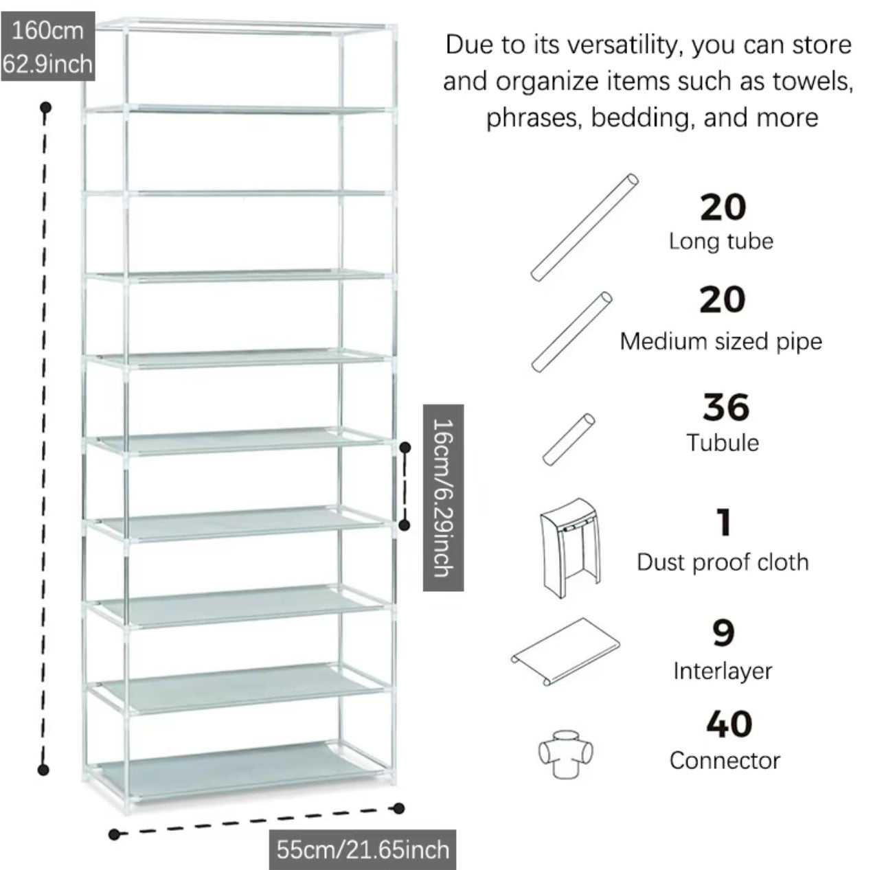 - Este zapatero de 9 capas proporciona a sus zapatos suficiente espacio para guardar sus zapatos.