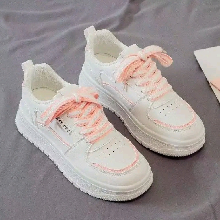 Zapatos casuales de mujer Estilo de punta redonda con comodidad de corte bajo. Letras con cordones v suela suave antideslizante. Zapato casual para exterior transpirable > ligero